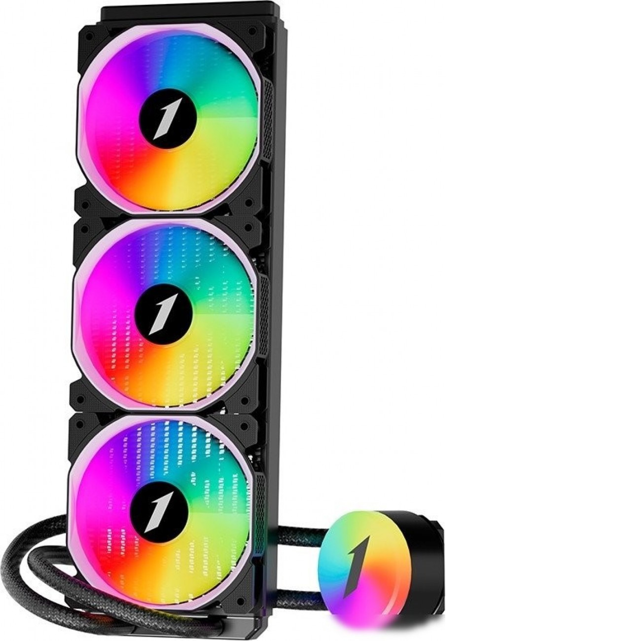 типоразмер 360, высота 52 мм, вентилятор 120 мм, прямое направление потока, 1800 об/мин, PWM, подшипник гидродинамический (FDB), ARGB подсветка, макс. шум 36.5 дБ