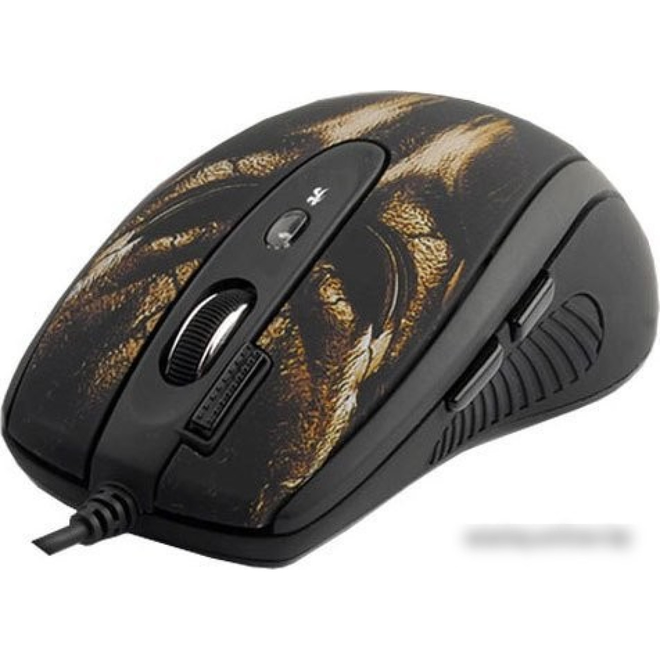 полноразмерная игровая мышь, проводная USB Type-A, сенсор лазерный 3600 dpi, 7 кнопок, колесо с нажатием, цвет черный/цветной принт