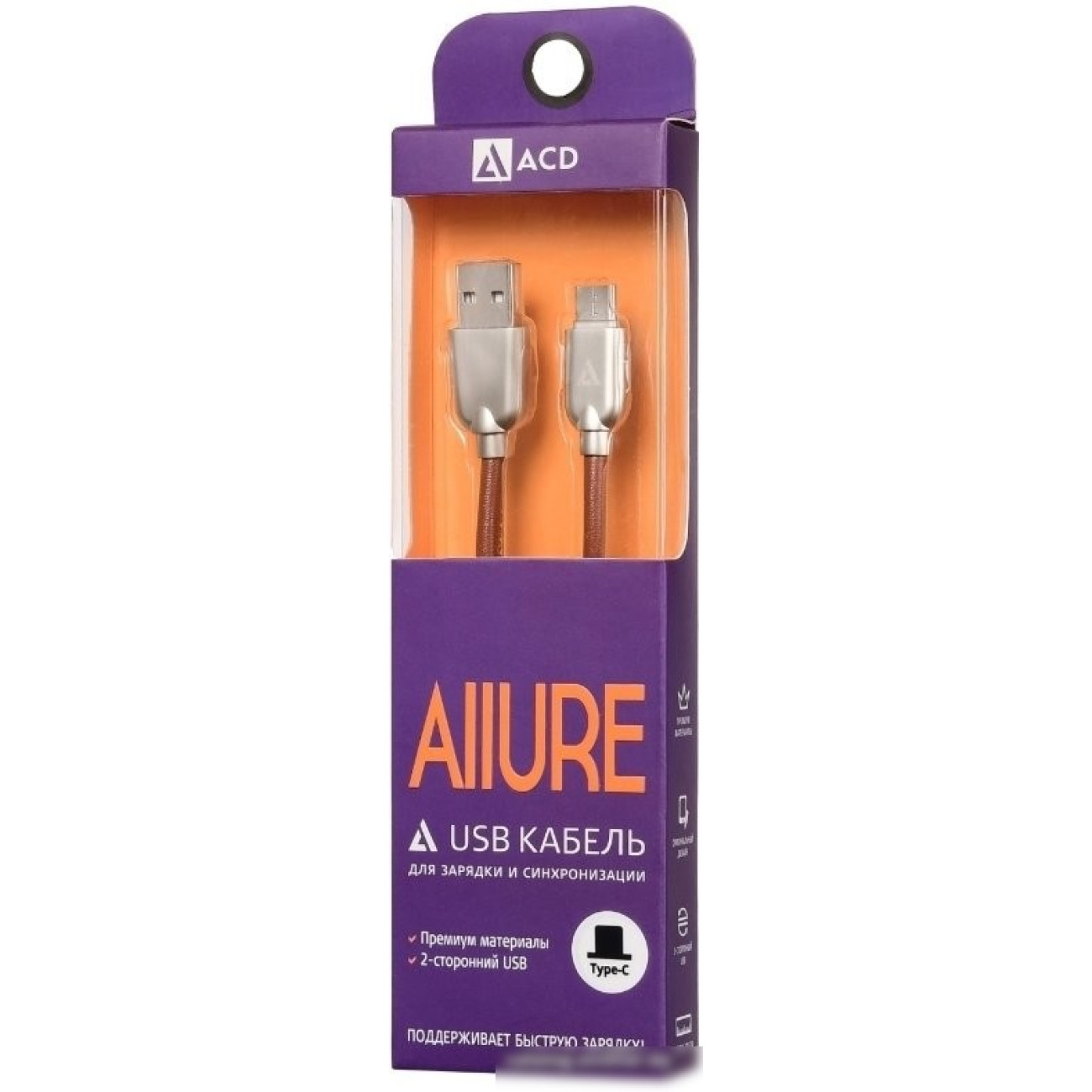 кабель USB 2.0 Type-C/USB 2.0 Type-A, коричневый, длина 1 м