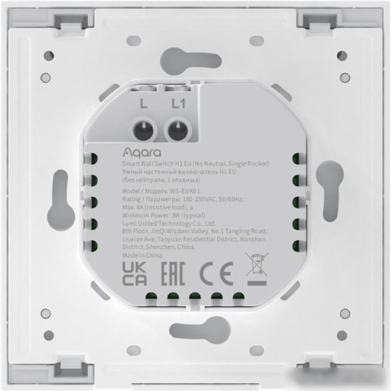 Описание Выключатель Aqara Smart Wall Switch H1 (одноклавишный, без нейтрали)