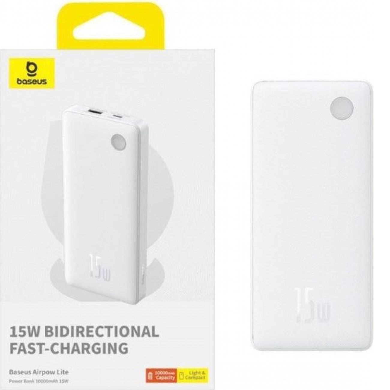 Основные характеристики Внешний аккумулятор Baseus Airpow Lite Power Bank 15W 10000mAh P10067500213-00 (белый)