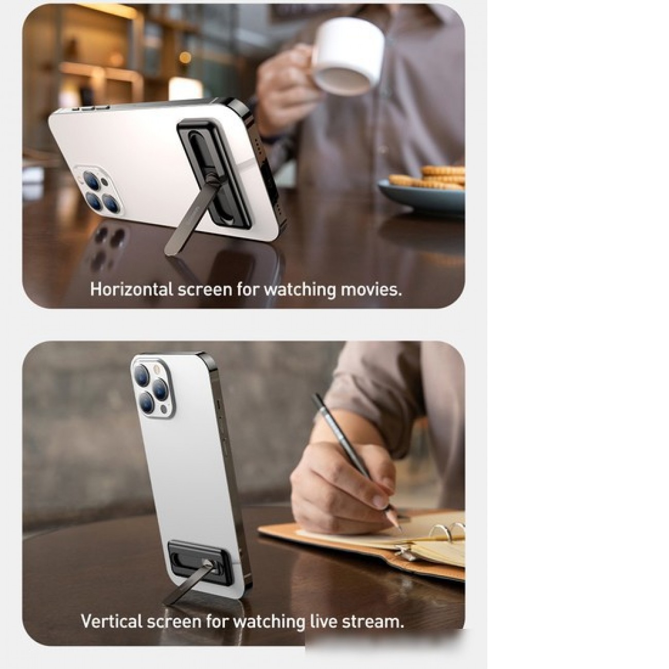 Особенности- совместимость с устройствами с размером от 5.4" - вращение накладки на 360° - угол наклона до 90° - крепление на клейкой ленте - не препятствует беспроводной зарядке