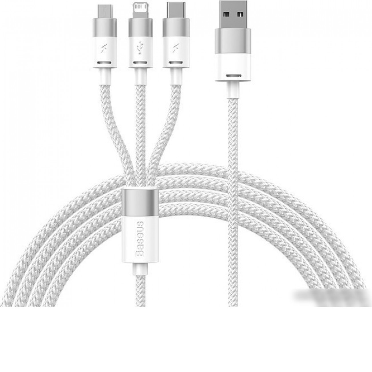 Описание Кабель Baseus One-For-Three Fast Charging Data Cable 3.5A USB Type-A - USB Type-C/microUSB/Lightning (0.5 м, белый)