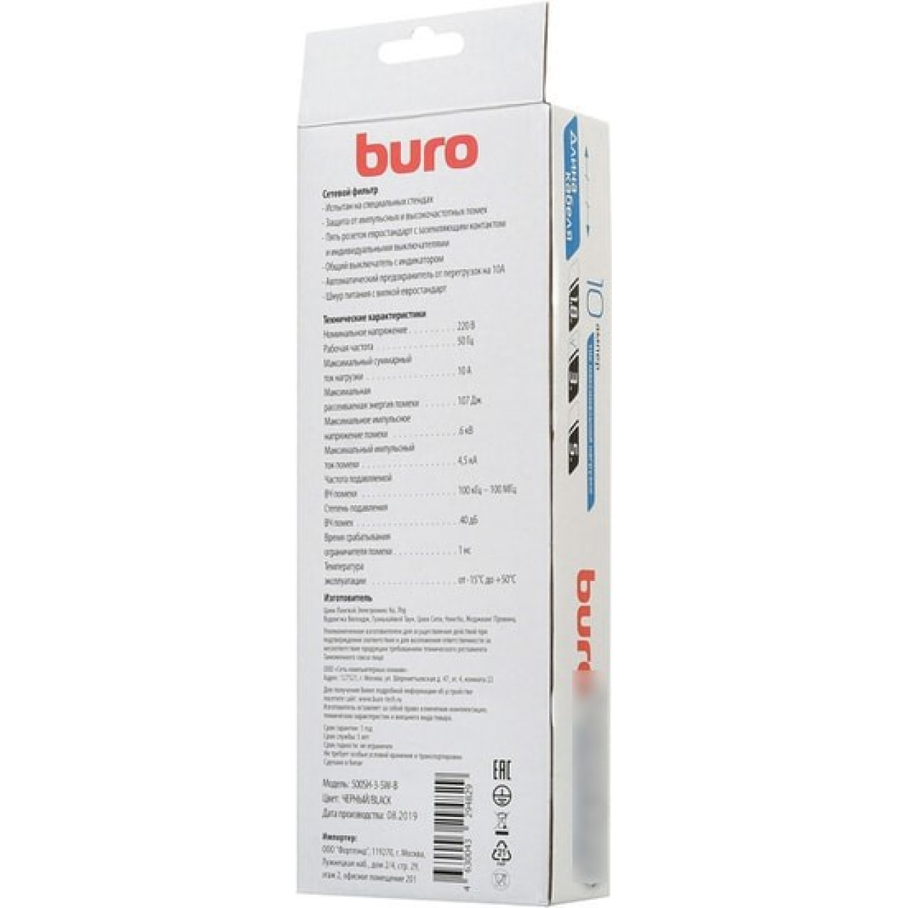 Основные характеристики Сетевой фильтр Buro 500SH-3-SW-B