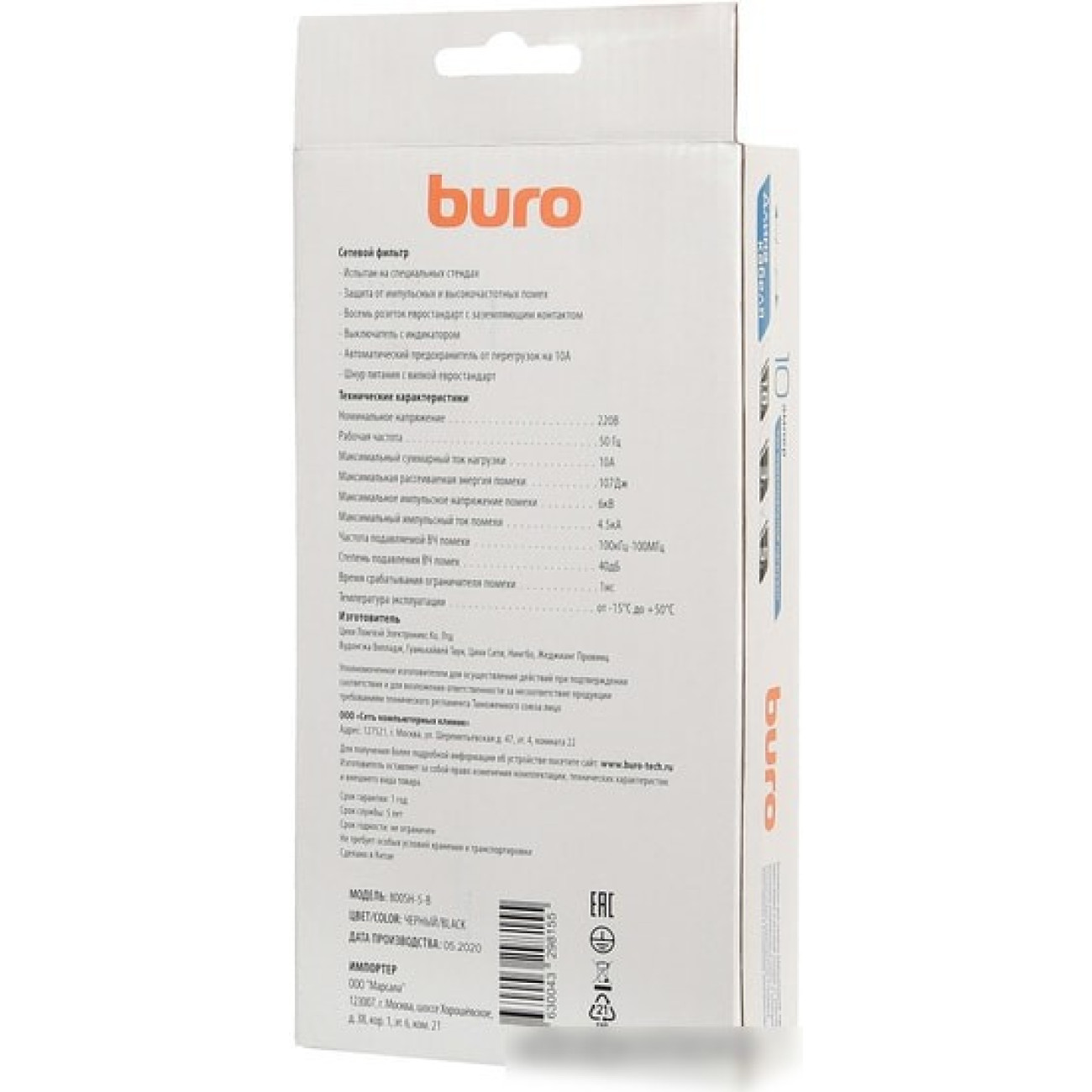 Основные характеристики Сетевой фильтр Buro 800SH-5-B