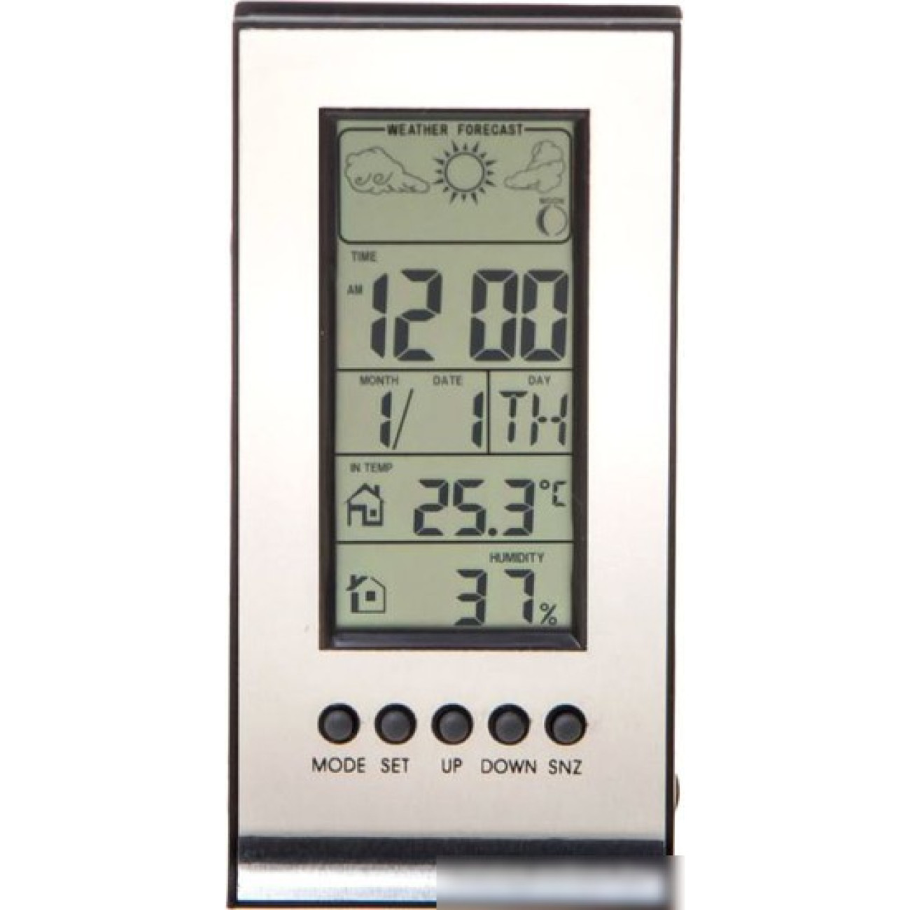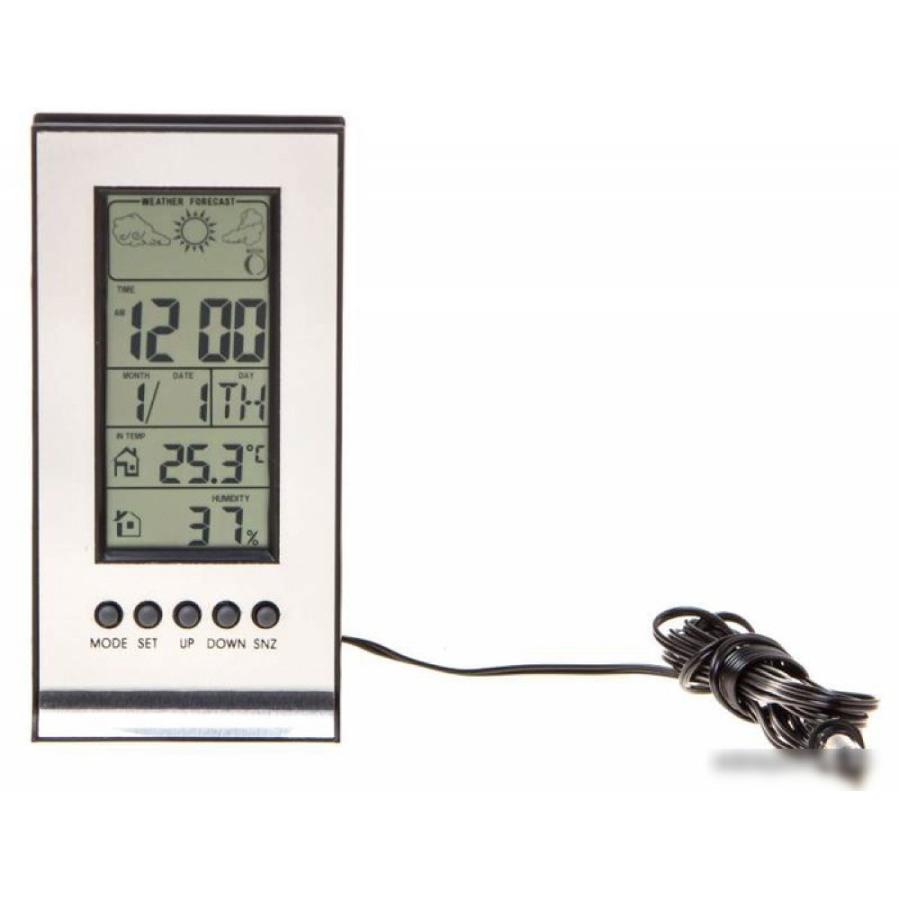 монохромный анимационный дисплей, поддержка 1 датчика, 110x55x28 мм, прогноз погоды, календарь, часы, будильник, лунный календарьГарантия: 12 мес. Изготовитель: ЗаполняетсяПоставщик в РБ: ООО СитиДистри, 220005, г. Минск, ул. Платонова, дом 20Б, помещение 141Сервисный центр: ООО СитиДистри, 220005, г. Минск, ул. Платонова, дом 20Б, помещение 318