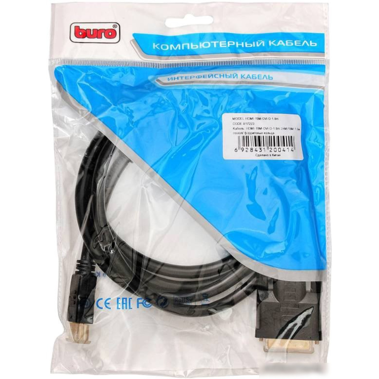 Основные характеристики Кабель Buro HDMI-19M-DVI-D-1.8M