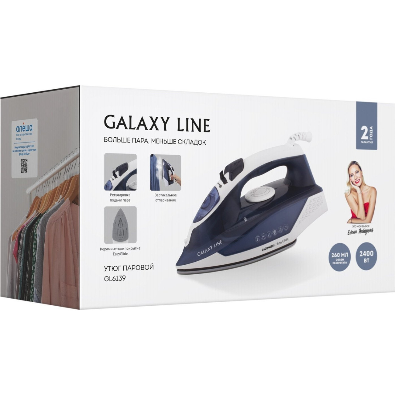 2400 Вт, с пароувлажнением, подошва EasyGlide, постоянная подача пара