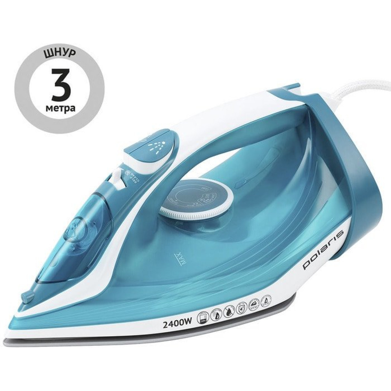 Описание Утюг Polaris PIR 2487AK 3m (бирюзовый)
