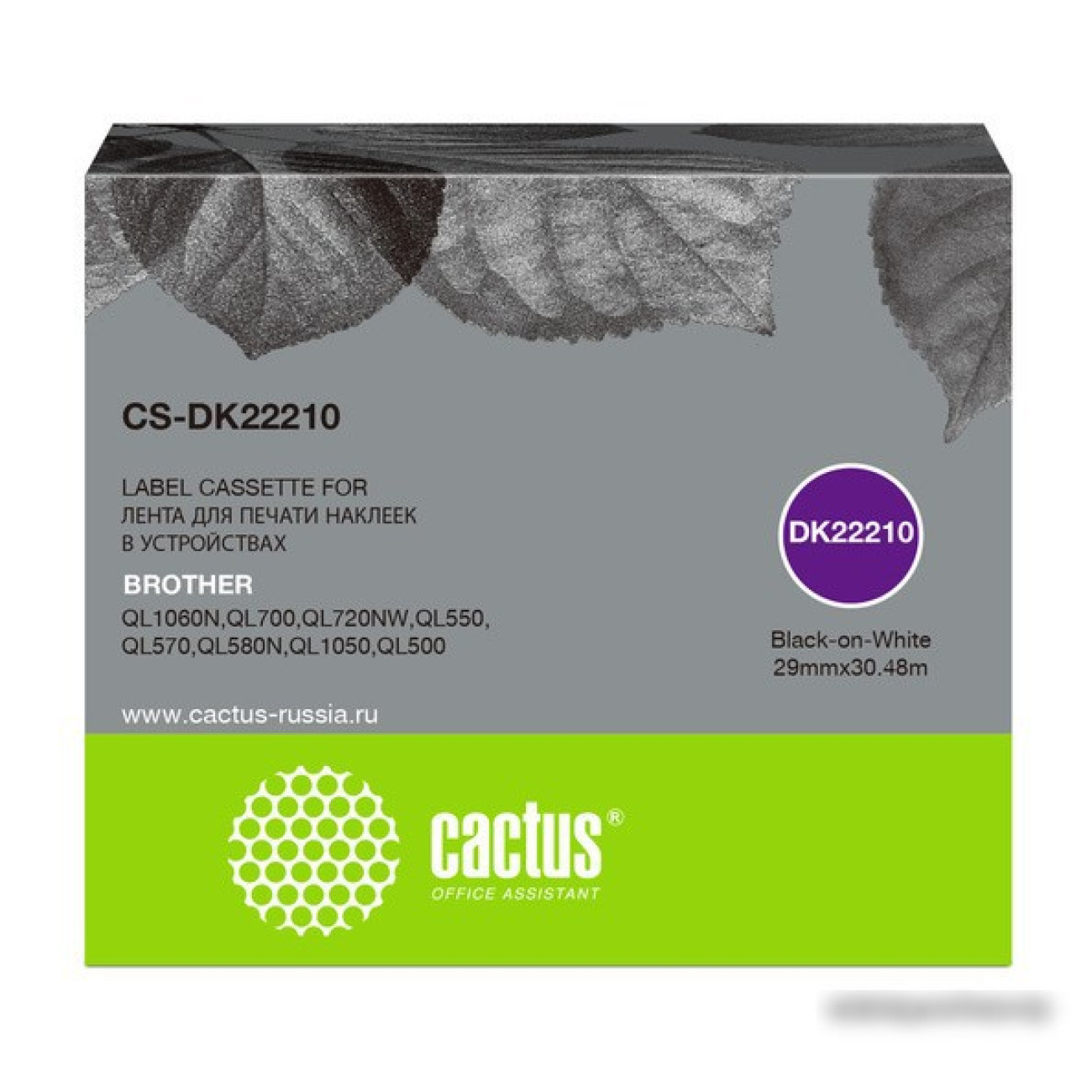Основные характеристики Картридж CACTUS CS-DK22210 (аналог Brother DK-22210)