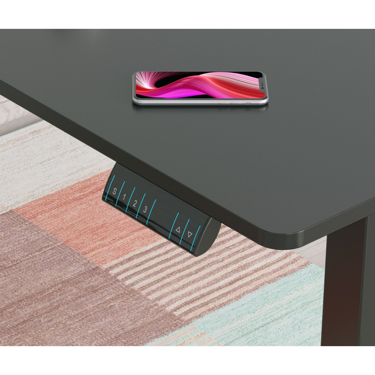 стол для работы, нестандартная форма, 1400x600 мм, высота 720 мм, материал: МДФ (столешница), сталь (опоры)