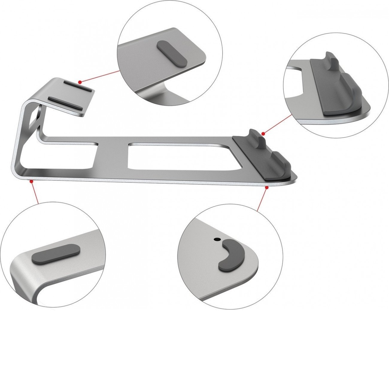 ОсобенностиПодставка прочно фиксируется на столе, благодаря силиконовым накладкам, и выдерживает нагрузку до 5кг.