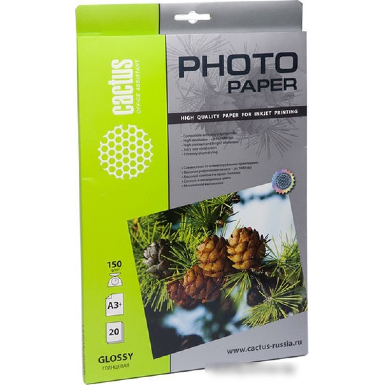 Основные характеристики Фотобумага CACTUS Глянцевая A3 150 г/кв.м. 20 листов (CS-GA315020)