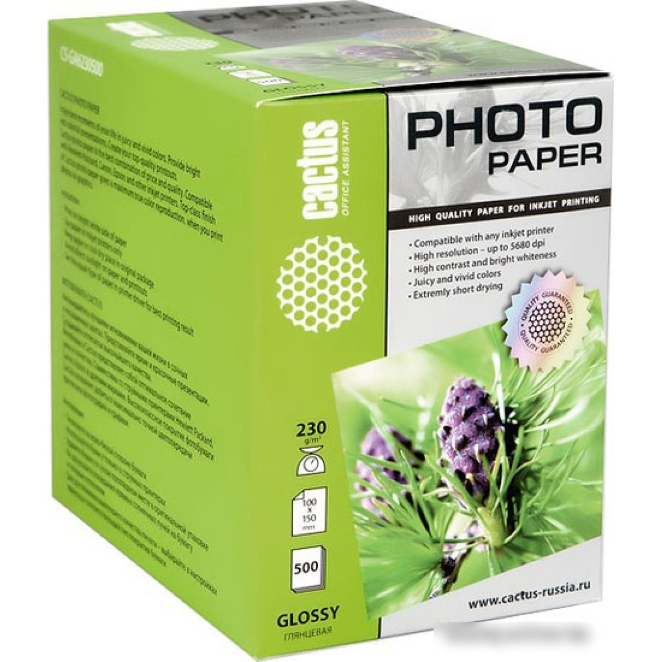 Основные характеристики Фотобумага CACTUS Глянцевая A6 230 г/кв.м. 500 листов (CS-GA6230500)