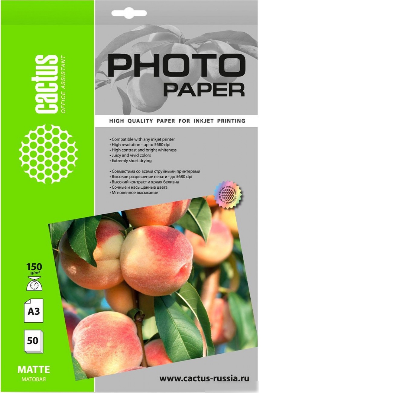 Основные характеристики Офисная бумага CACTUS Матовая A3 150г/м2 50 л CS-MA315050
