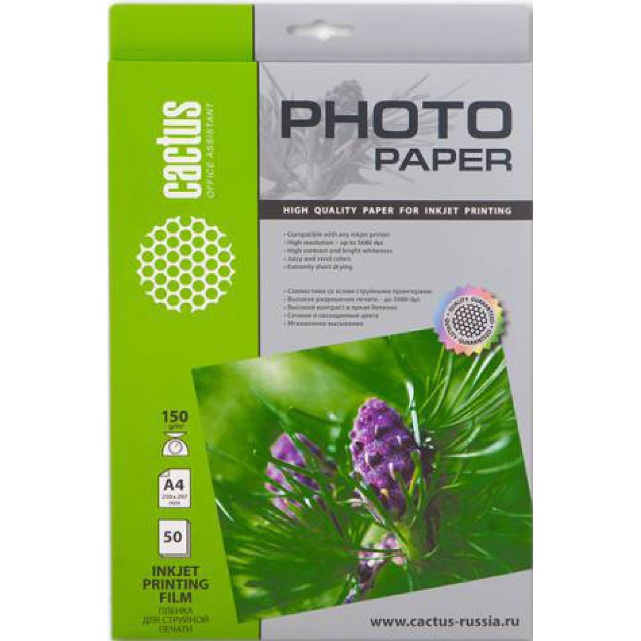 Описание Пленка для ламинирования CACTUS прозрачная A4 150 г/кв.м. 50 листов [CS-FA415050]