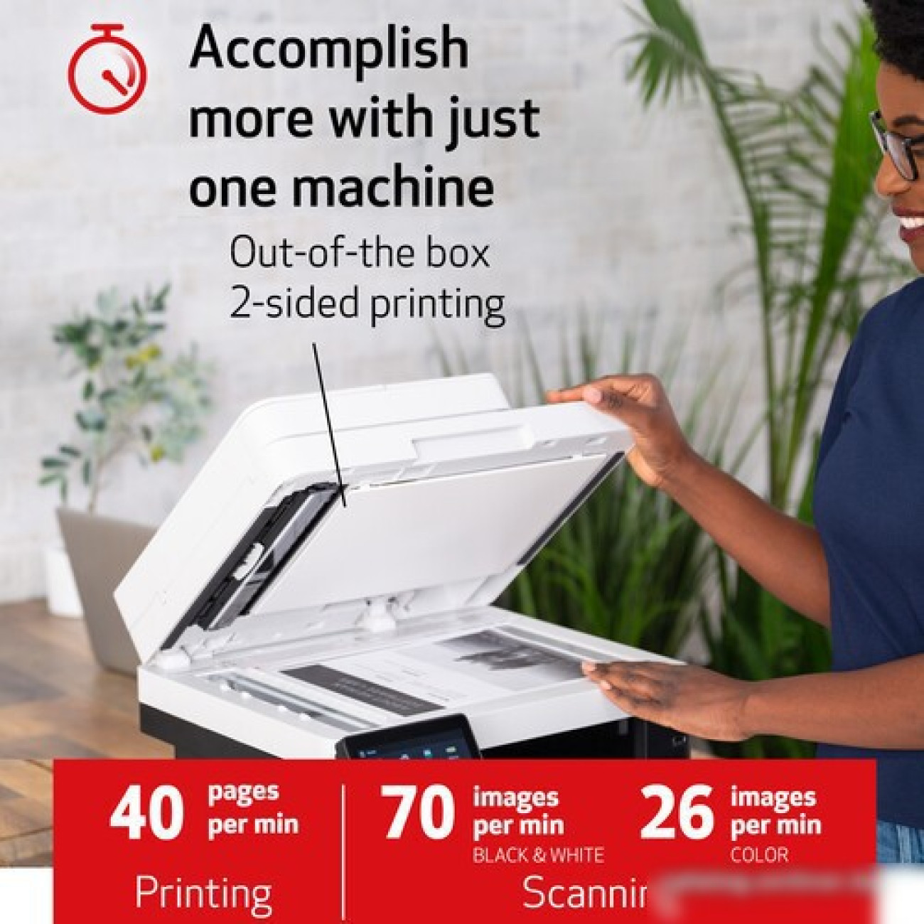 МФУ, лазерный, черно-белый, формат A4 (210x297 мм), скорость ч/б печати 38 стр/мин, разрешение 1200 dpi, факс, LAN, Wi-Fi