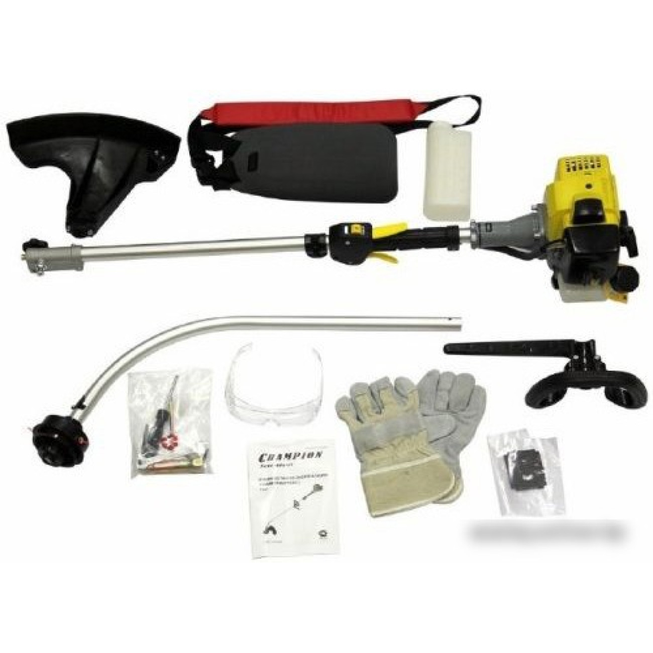 АксессуарыДвигатель с органами управленияНижняя часть штангиР-образная рукояткаКожух защитный с ограничителем длины кордаРемень наплечный с защитой бедраЕмкость для приготовления топливной смесиРемонтный наборКлючНабор крепления кожухаПерчатки защитныеОчки защитные