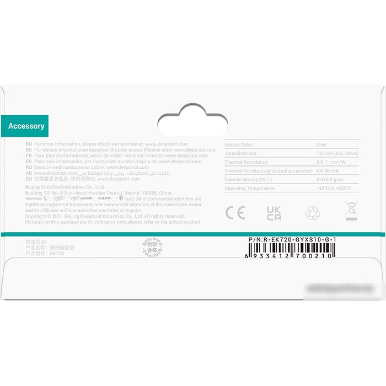 Основные характеристики Термопрокладка DeepCool EK720-XS-1.5 120x20x1.5