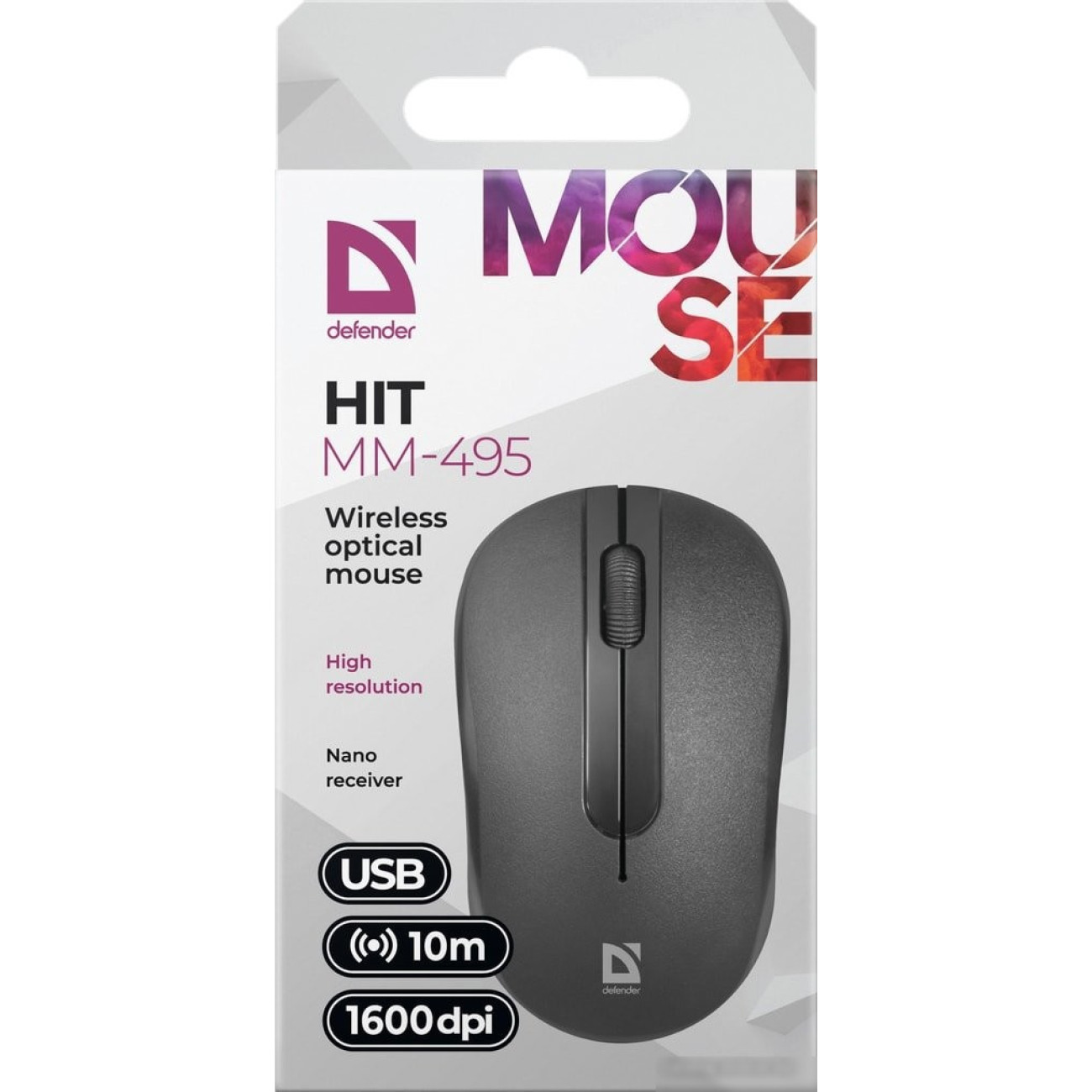 мышь, беспроводная радио, сенсор оптический 1600 dpi, 3 кнопки, колесо с нажатием, цвет черный