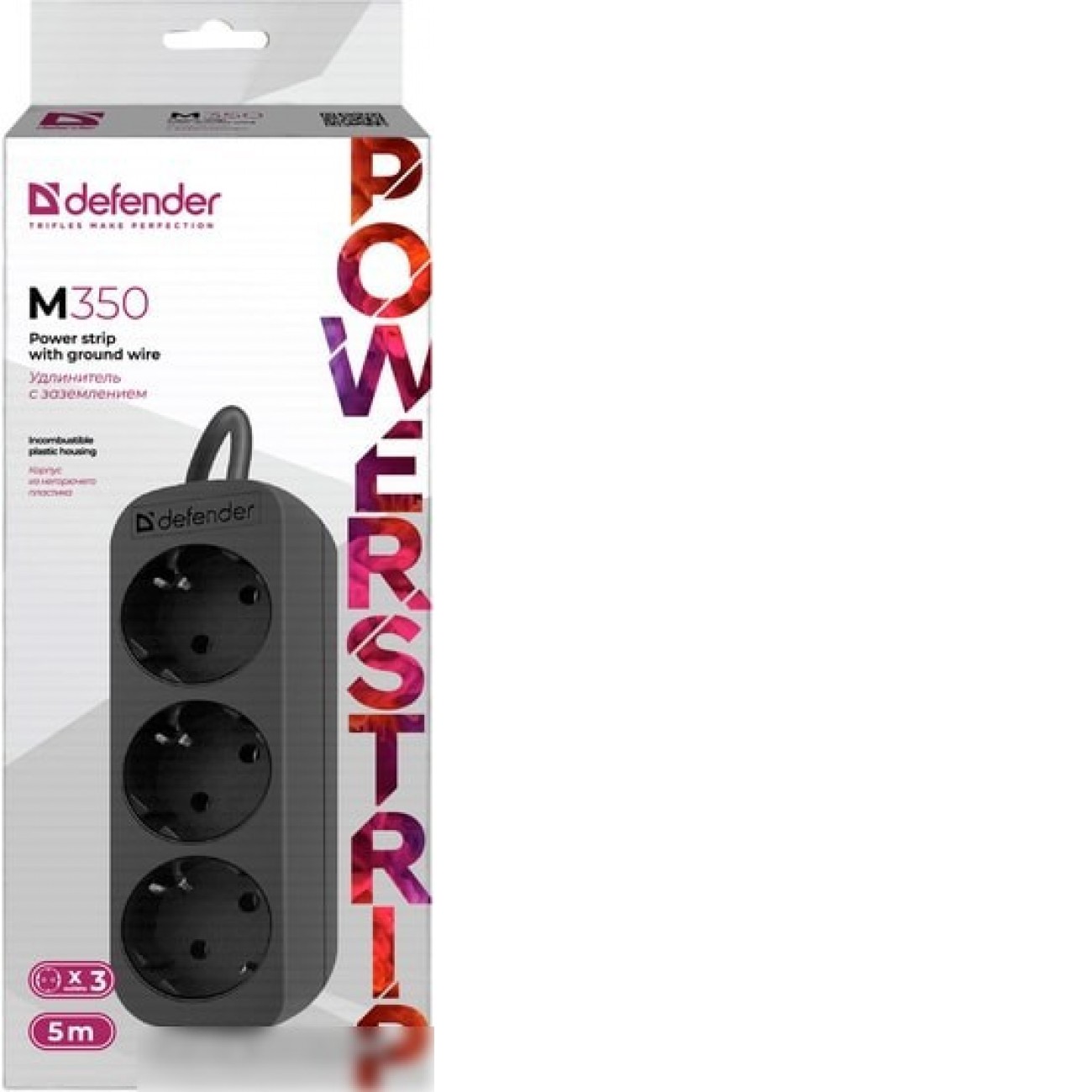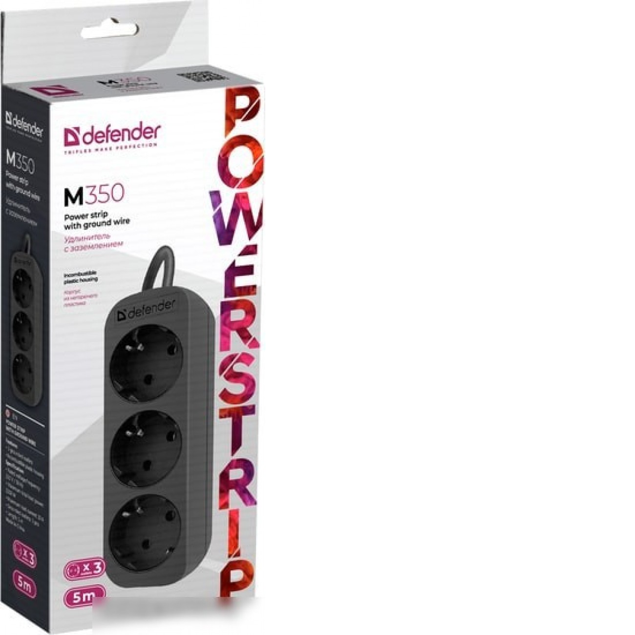 удлинитель, кабель 5 м, 3 розетки Schuko (евро с заземлением) / 2200 Вт