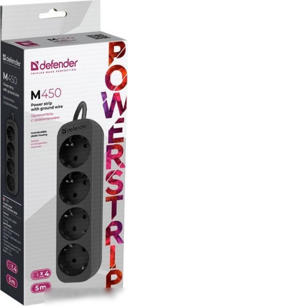 удлинитель, 3 м, 4 розетки евро с заземлением / 2200 Вт