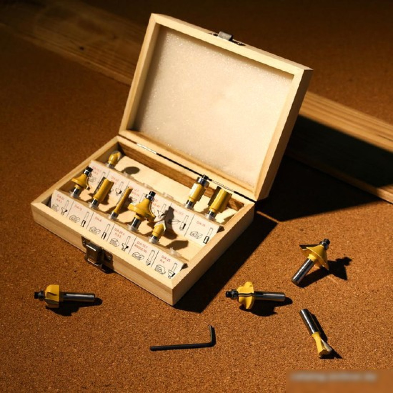 Фрезер - 1 шт. Параллельный упор - 1 шт. Копировальная втулка - 1 шт. Цанга 8мм и 6мм Пылеотвод - 1 шт. Ключ - 1 шт. Инструкция Коробка В комплект входит универсальный набор фрез для фигурного фрезерования дерева: Пазовая конструкционная фреза «ласточкин хвост» DIA-12.7, ANGLE-14 Пазовая прямая фреза DIA-16 Пазовая прямая фреза DIA-12 Пазовая прямая фреза DIA-6 Пазовая V-образная фреза DIA-12.7, ANGLE-90 Кромочная калевочная фреза DIA-22, R-6.3 Кромочная калевочная фреза DIA-32, ANGLE 45 Кромочная прямая фреза DIA-12.7 Кромочная калевочная фреза DIA-22, R-6.3 Кромочная калевочная фреза DIA-28.6, R-9.5 Кромочная калевочная фреза DIA-25, R-4 Шестигранный ключ 2, 5 мм