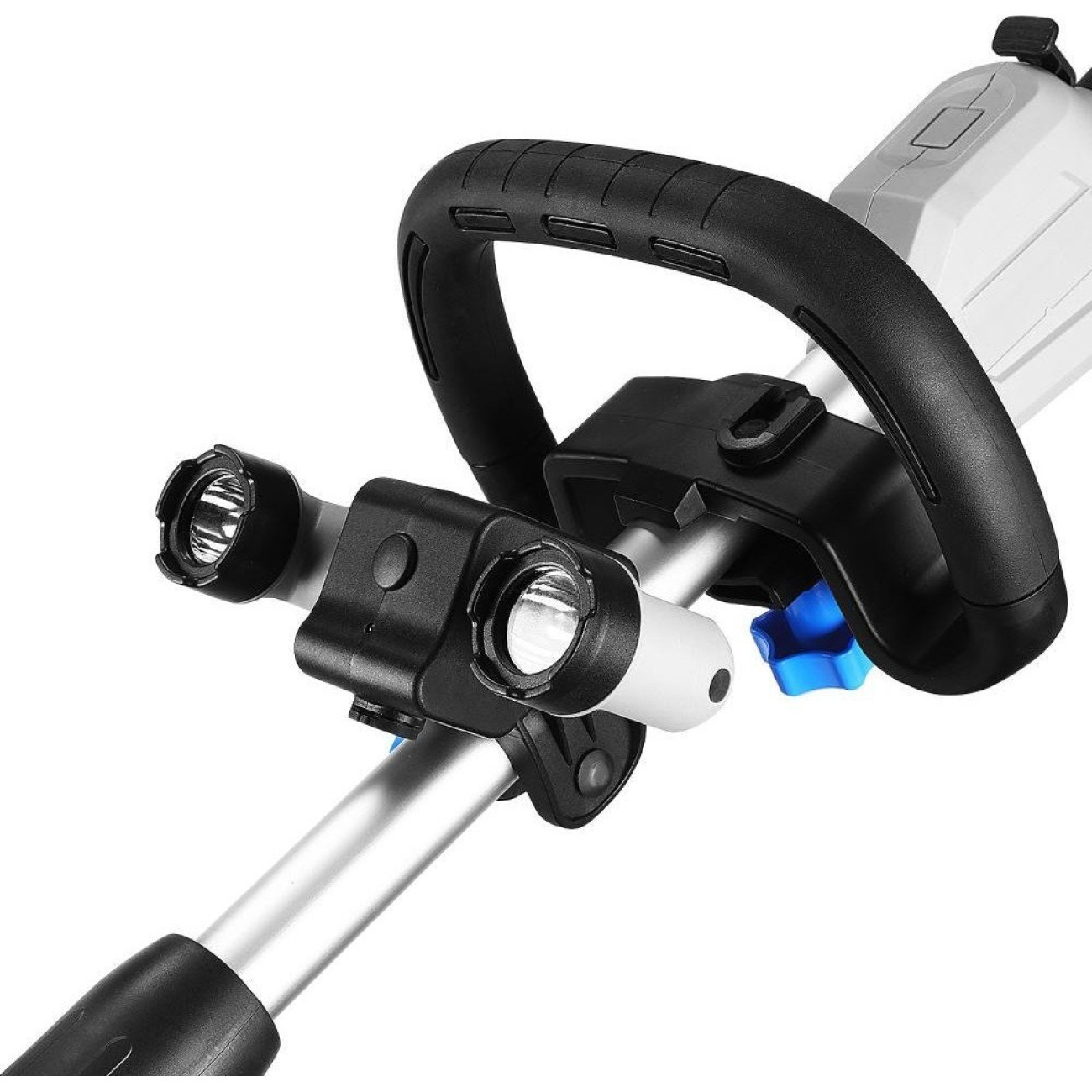 ручной, аккумуляторный двигатель, захват 43x20 см, выброс на 7 м