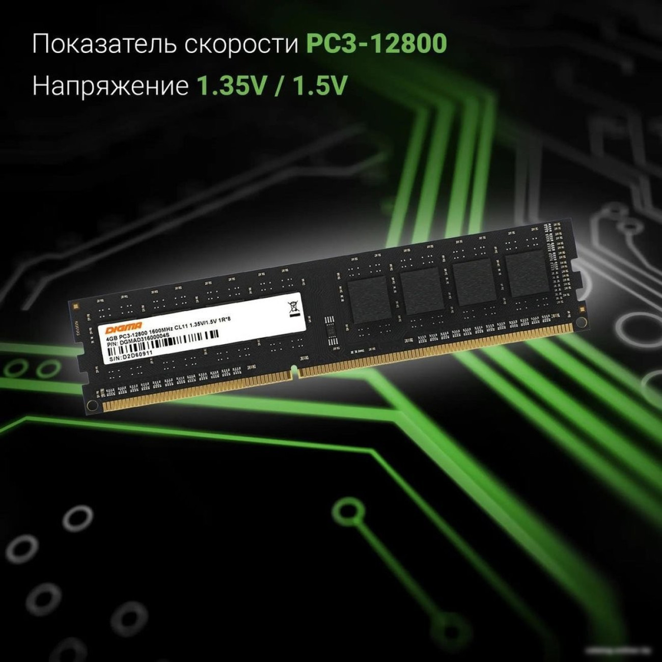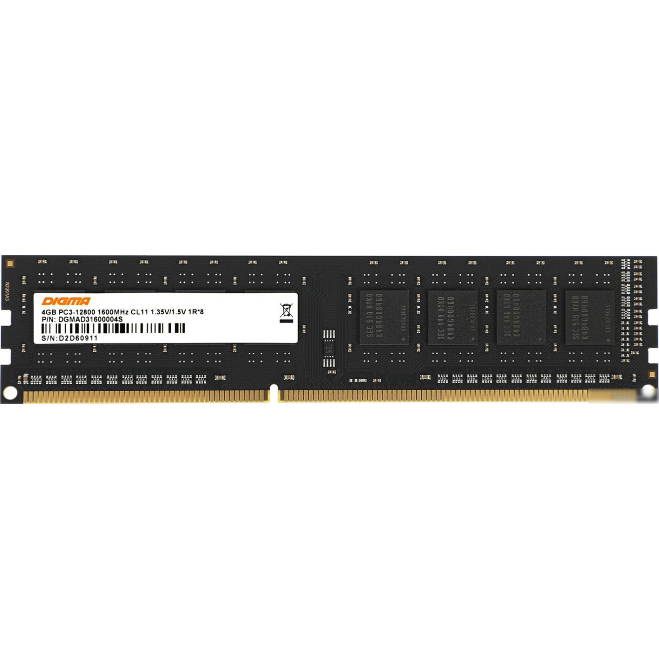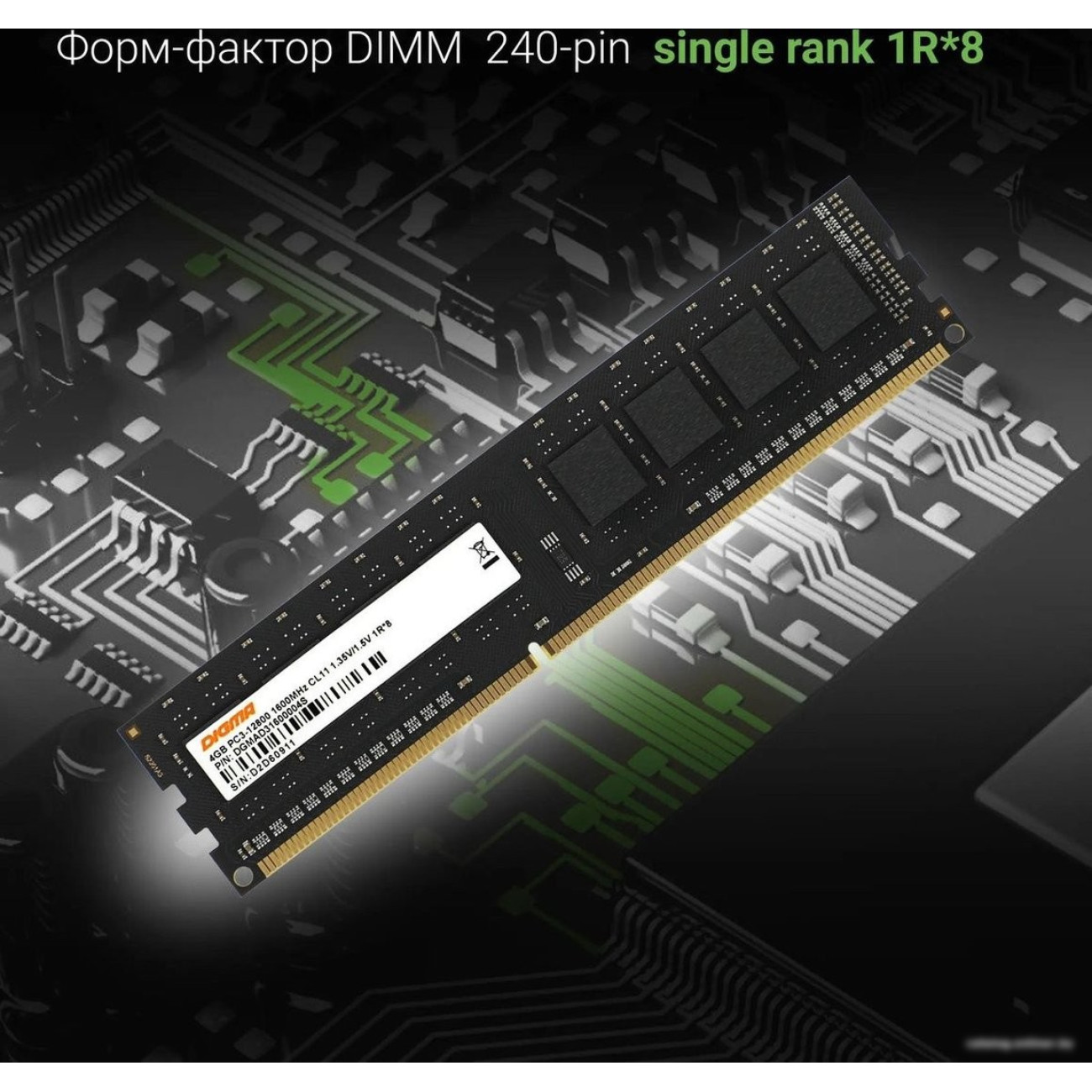 Основные характеристики Оперативная память Digma 4ГБ DDR3 1600 МГц DGMAD31600004S