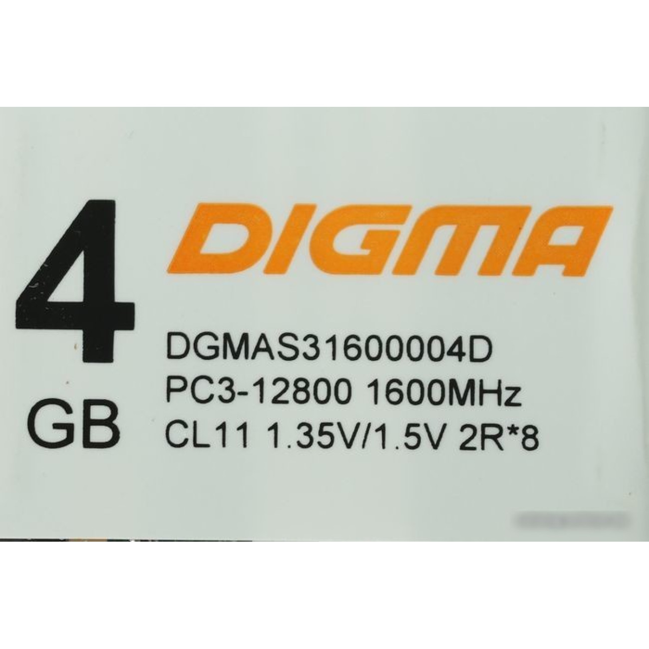 Основные характеристики Оперативная память Digma 4ГБ DDR3 SODIMM 1600 МГц DGMAS31600004D