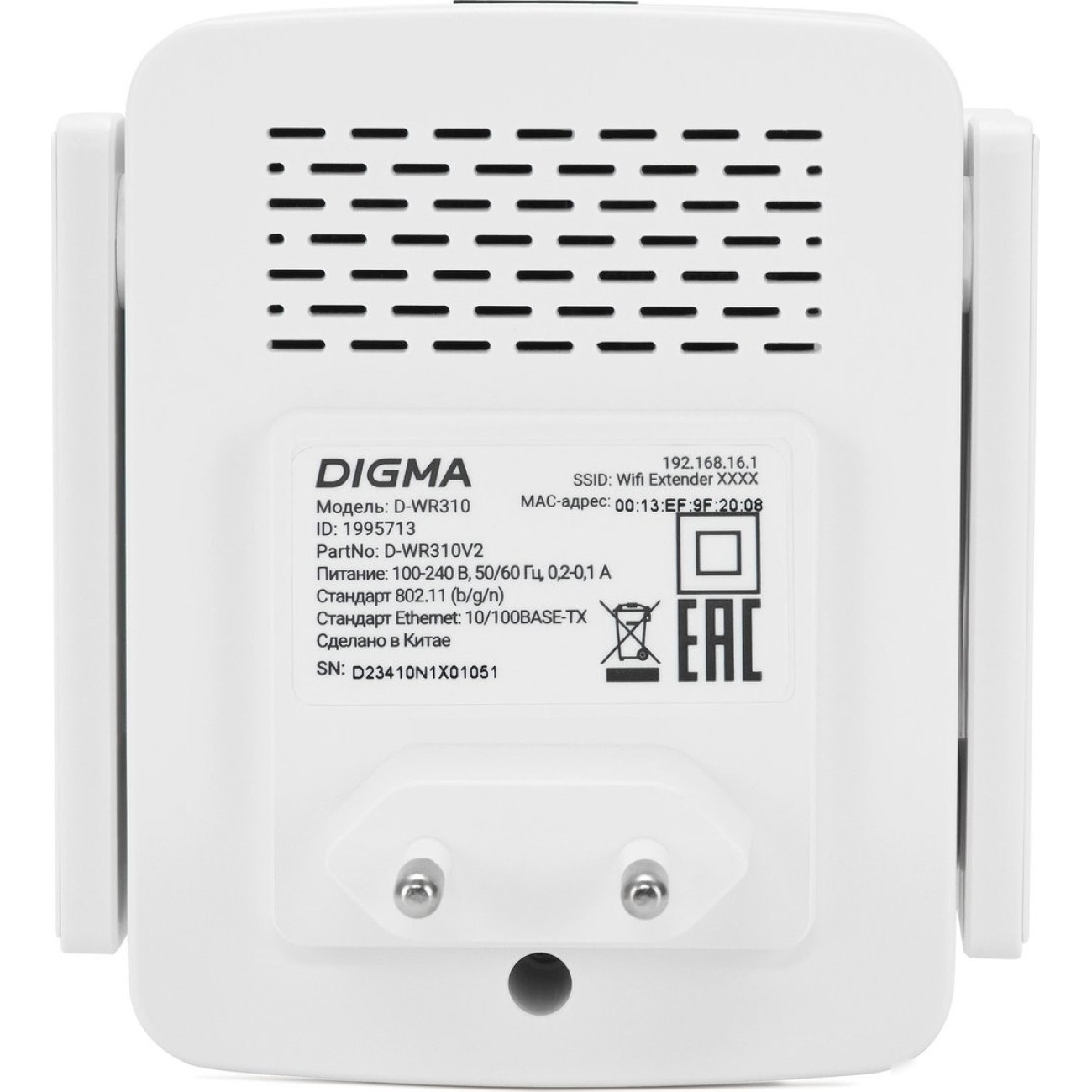 Основные характеристики Усилитель Wi-Fi Digma D-WR310V2