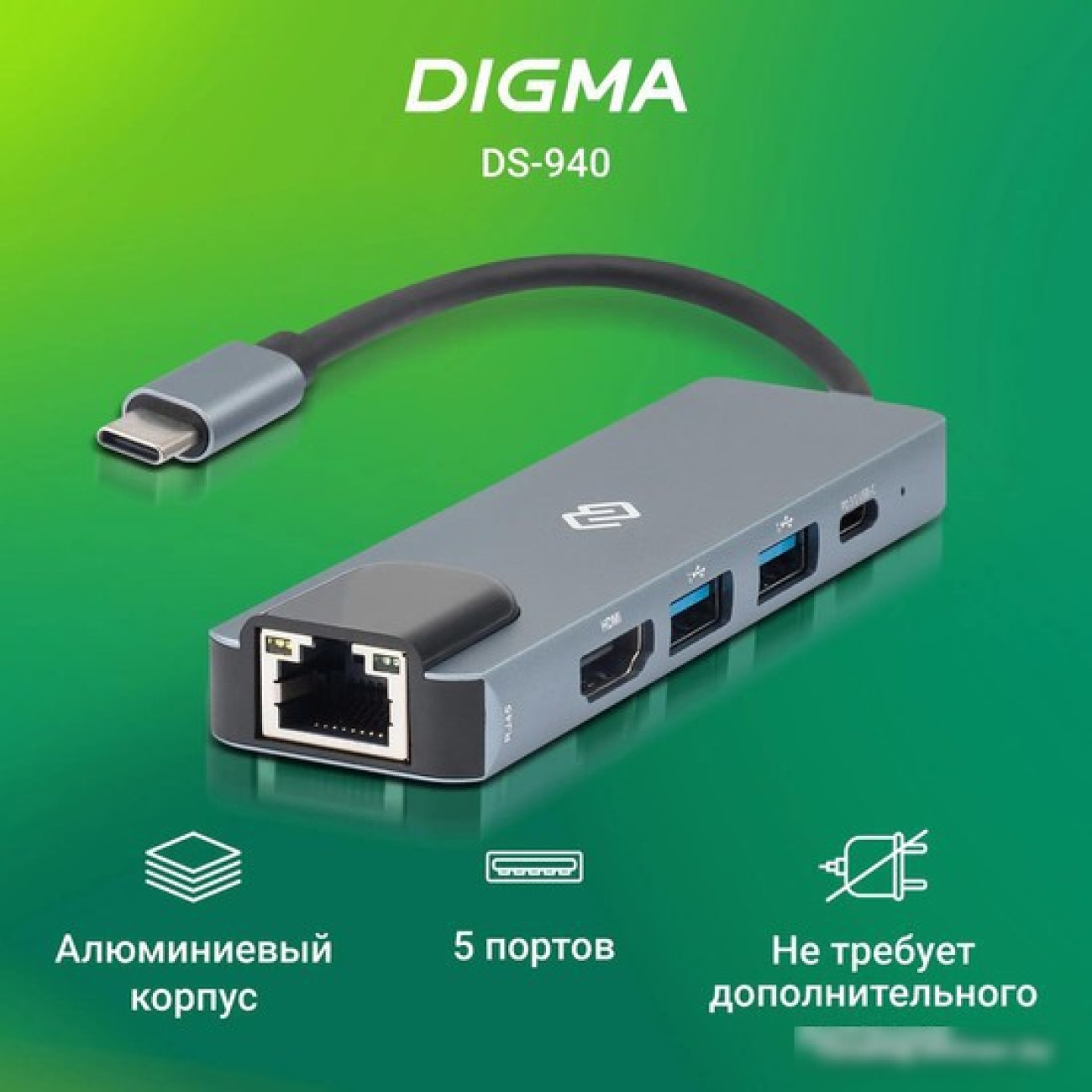 подключение по USB-C, 2 x USB-A, 1 x USB-C, видео до 4K 30 Гц, питание USB-C PD до 87 Вт, LAN-адаптер 100 Мбит/с, корпус металл