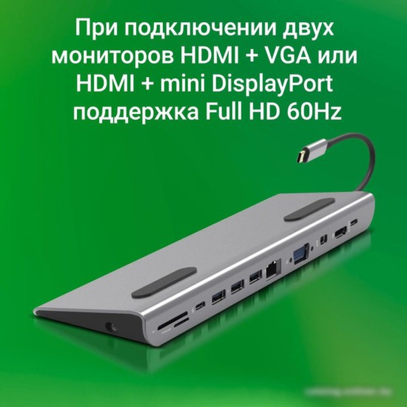 подключение по USB-C, 3 x USB-A, 2 x USB-C, видео до 4K 30 Гц, питание USB-C PD до 100 Вт, LAN-адаптер 1000 Мбит/с, кардридер, корпус металл
