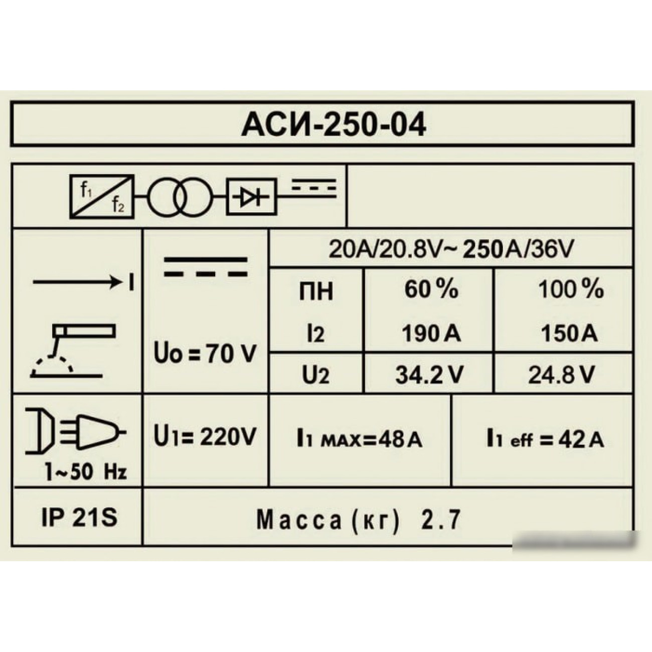 Основные характеристики Сварочный инвертор ДИОЛД АСИ 250-04