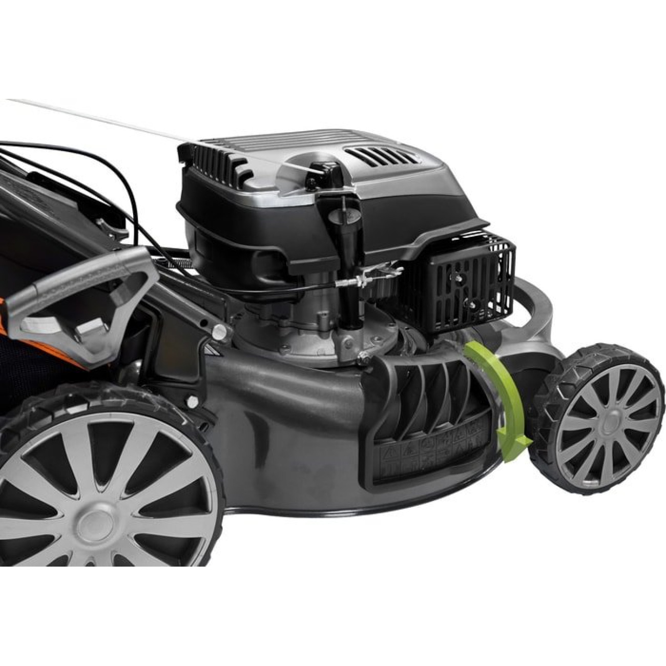 роторная газонокосилка, бензиновый двигатель 3600 Вт (4.9 л.с.), ширина скашивания: 52 см, мягкий травосборник 65 л, корпус: сталь