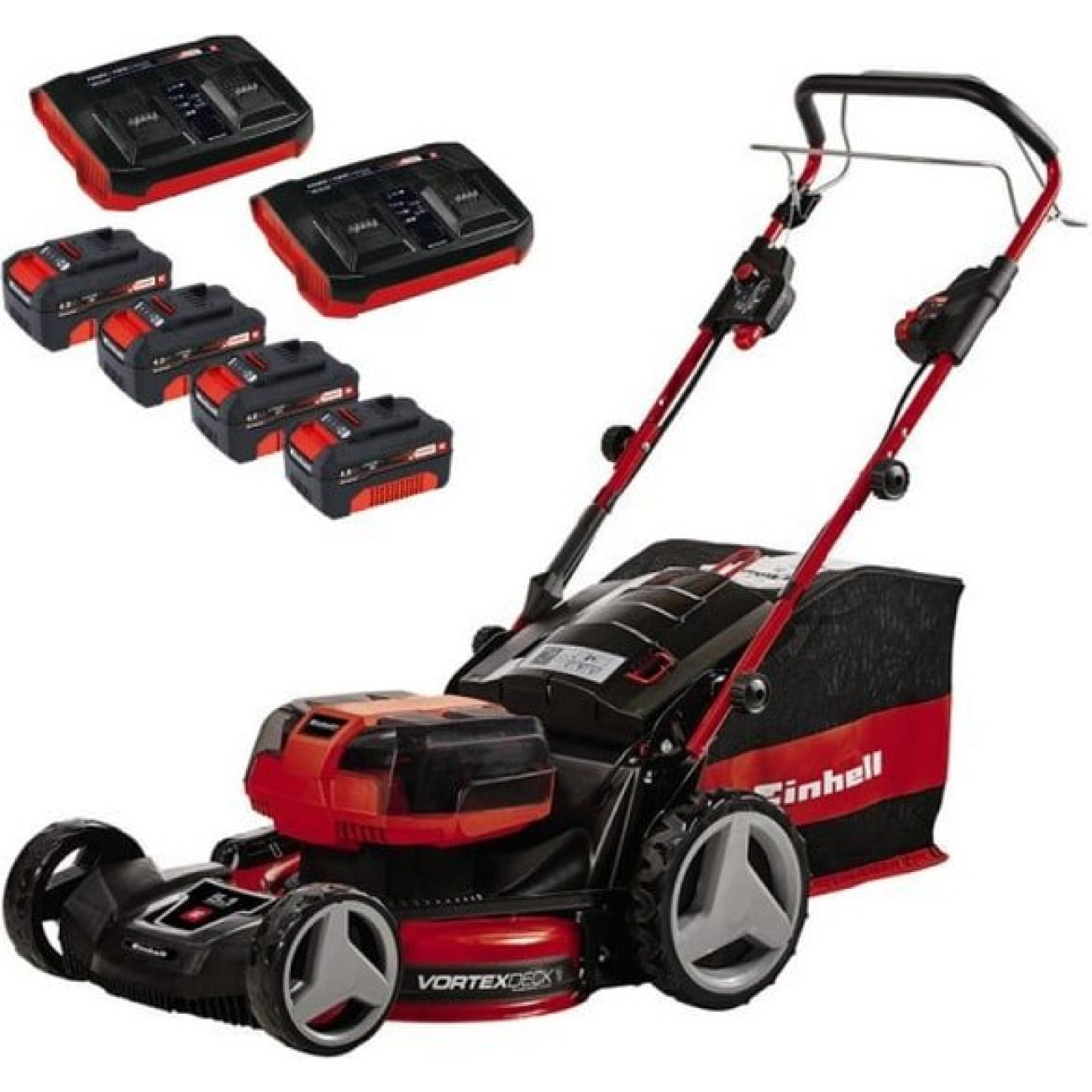 Комплектация - Газонокосилка- Аккумулятор - 4 шт.- Двойное зарядное устройство - 2 шт.- Травосборник - 1 шт.- Адаптер для мульчирования - 1 шт.- Инструкция- Упаковка