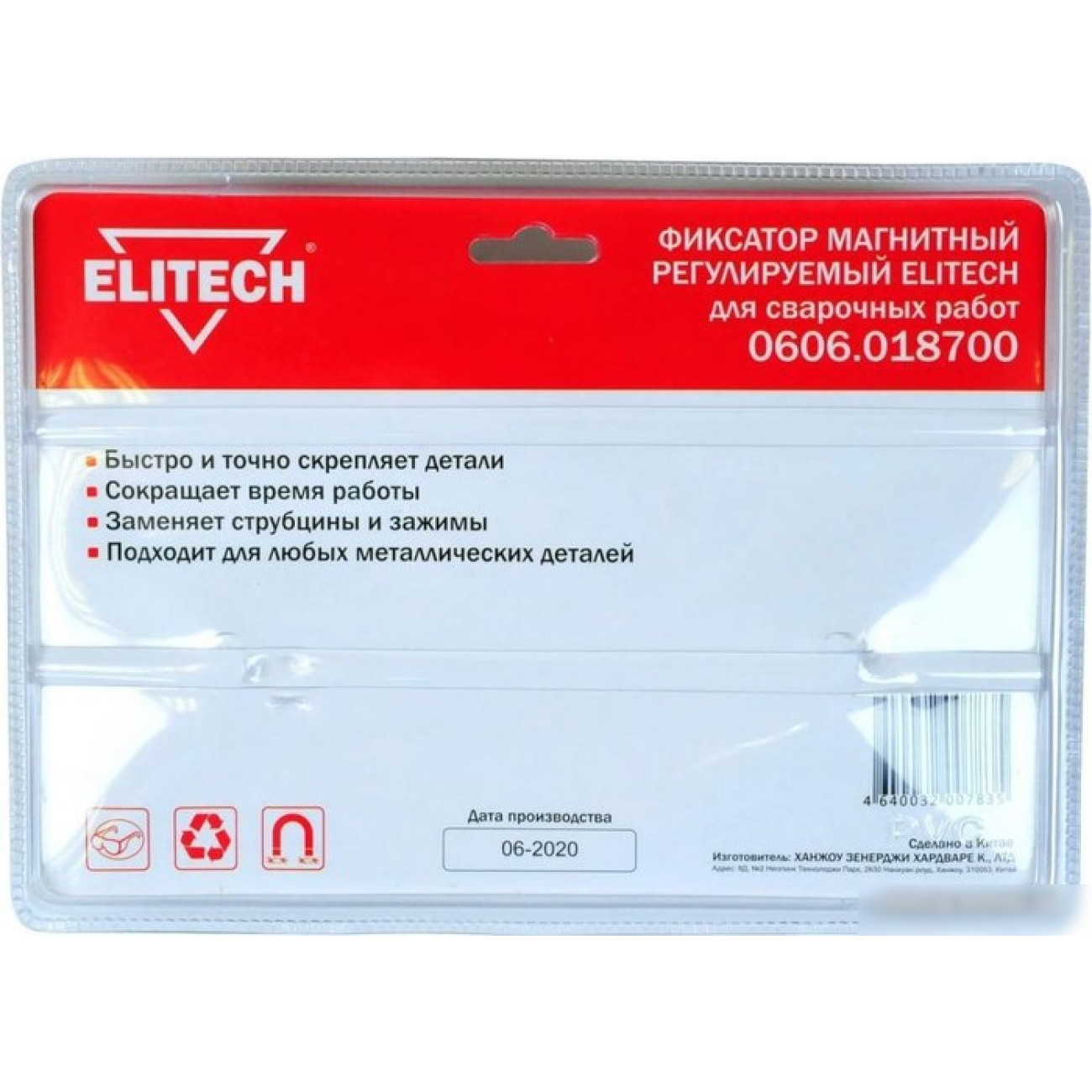 Основные характеристики Угольник магнитный ELITECH 0606.018700