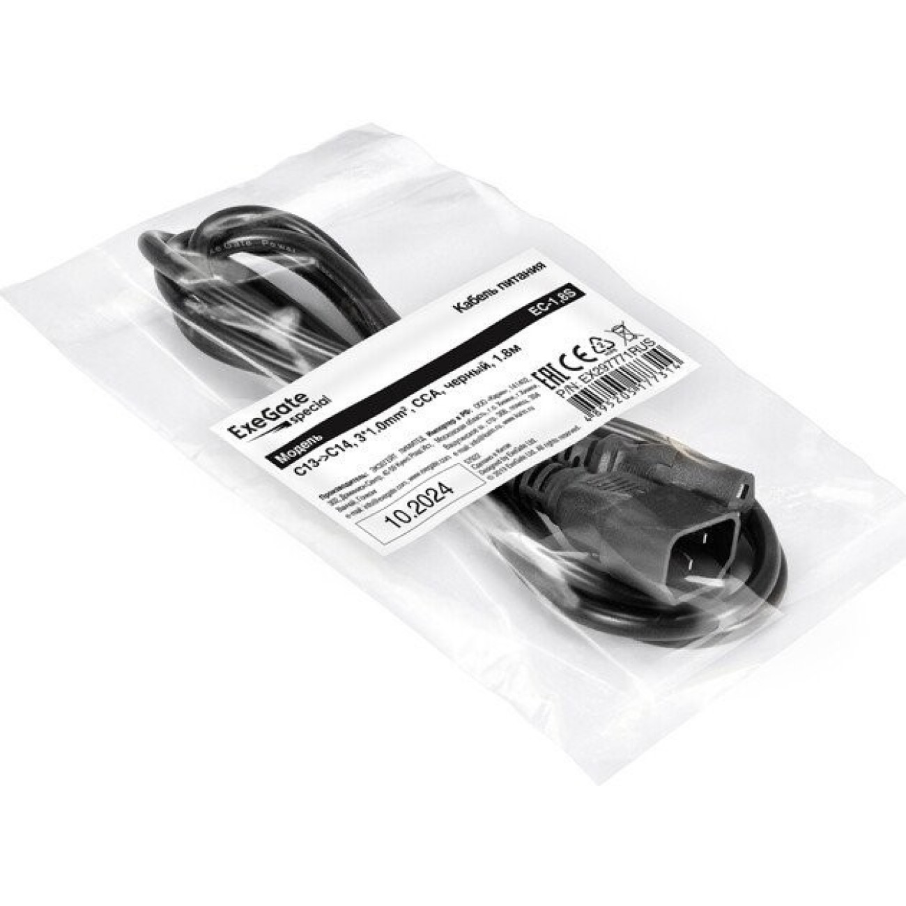 Основные характеристики Кабель ExeGate EC-1.8S-C13-C14/3x1.0