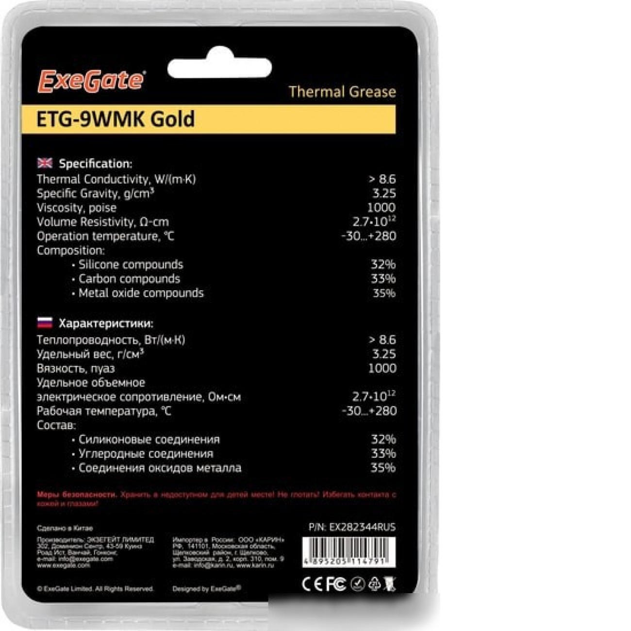 Описание Термопаста ExeGate ETG-9WMK Gold EX282344RUS (8 г.)