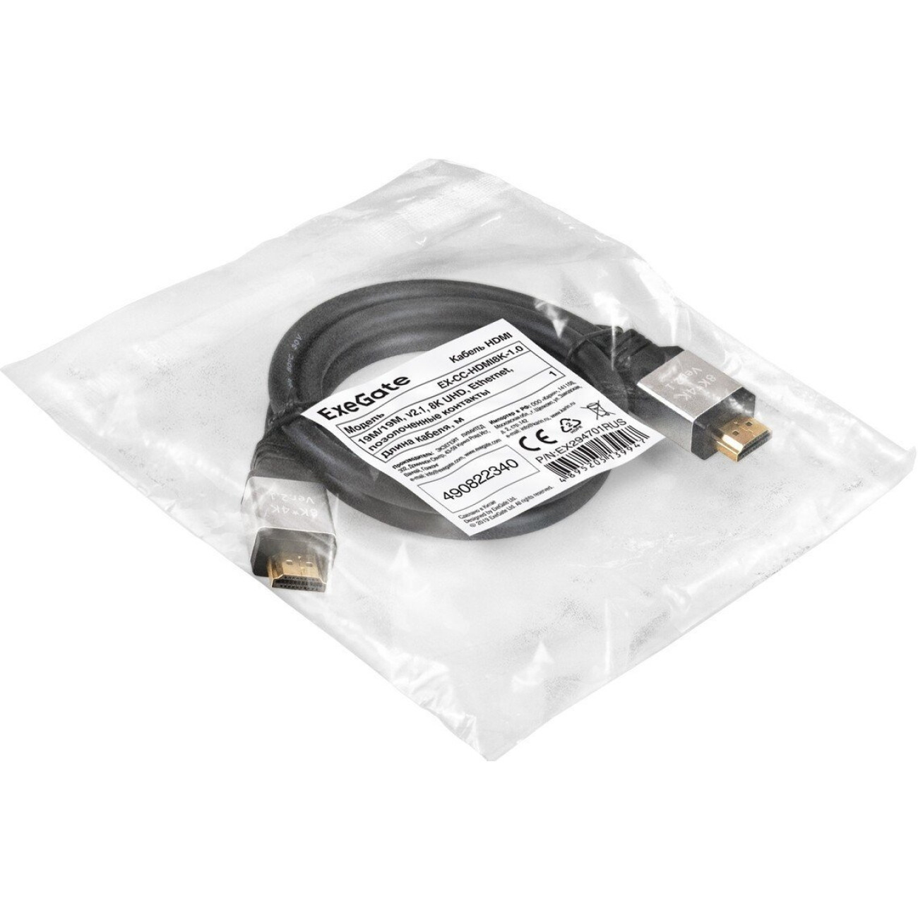 Основные характеристики Кабель ExeGate EX-CC-HDMI8K-1.0 HDMI - HDMI (1 м, черный)