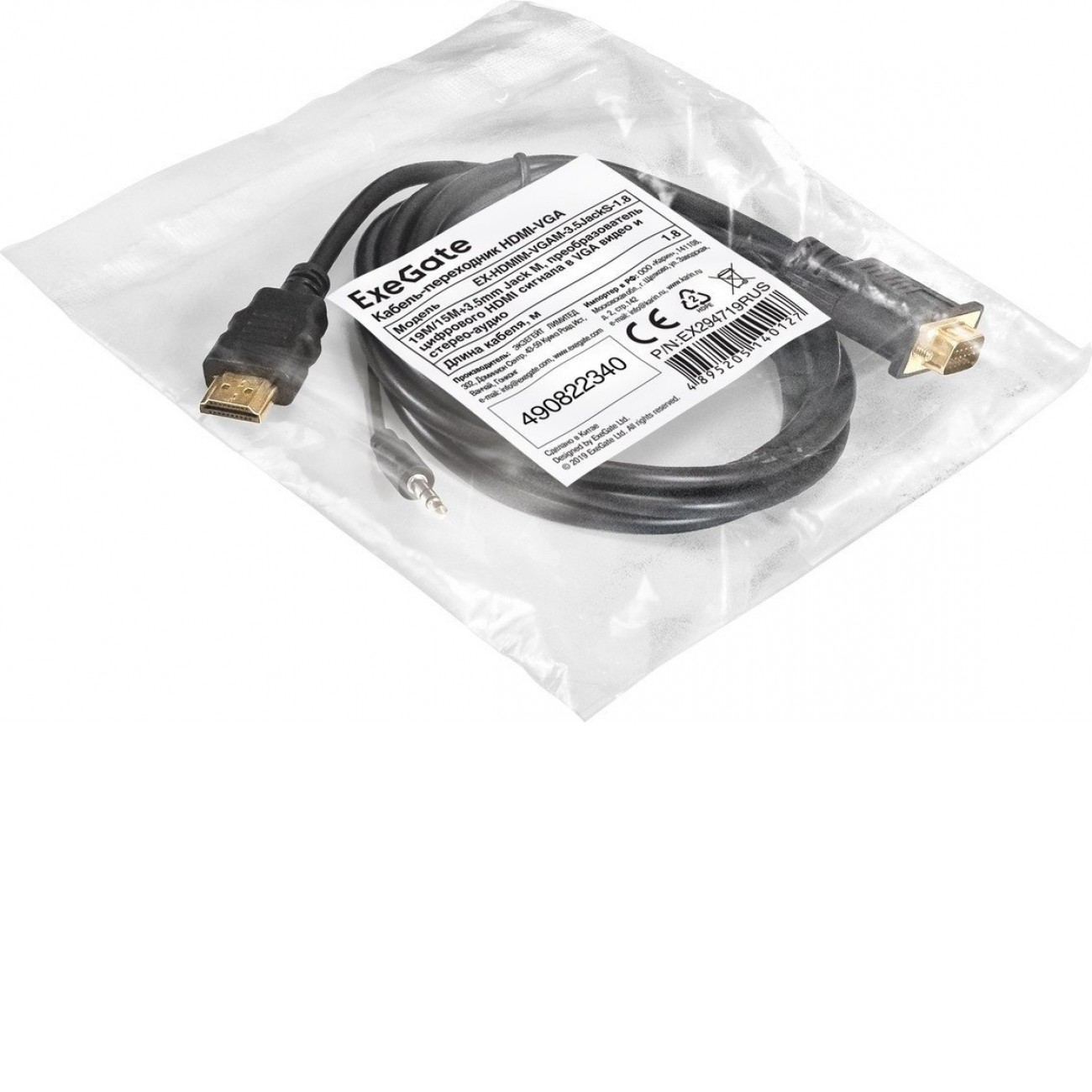 Основные характеристики Кабель ExeGate EX-HDMIM-VGAM-3.5JackS-1.8