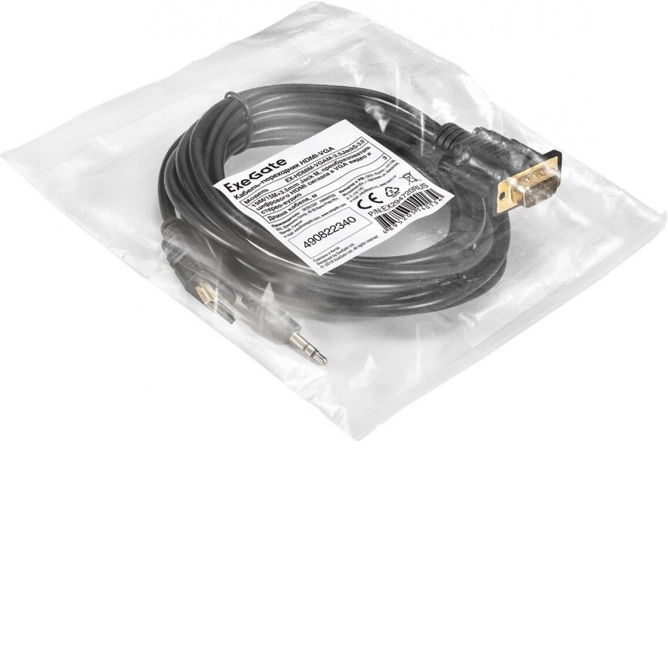 Основные характеристики Кабель ExeGate EX-HDMIM-VGAM-3.5JackS-3.0