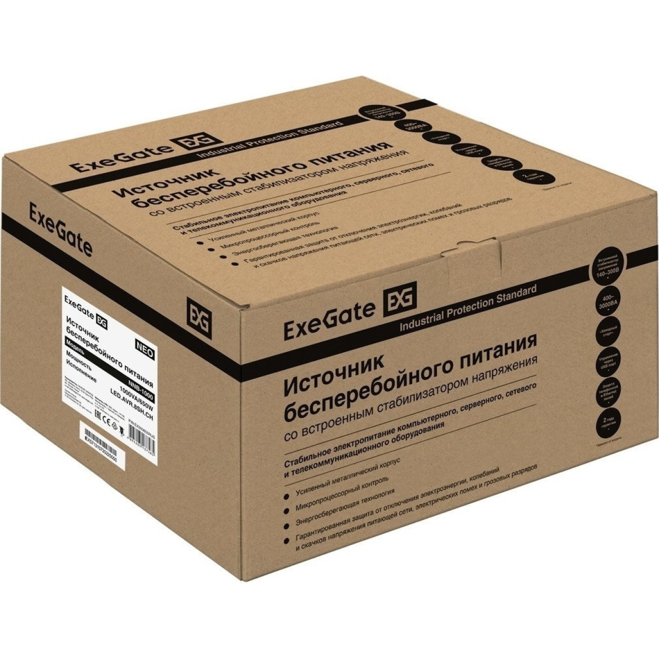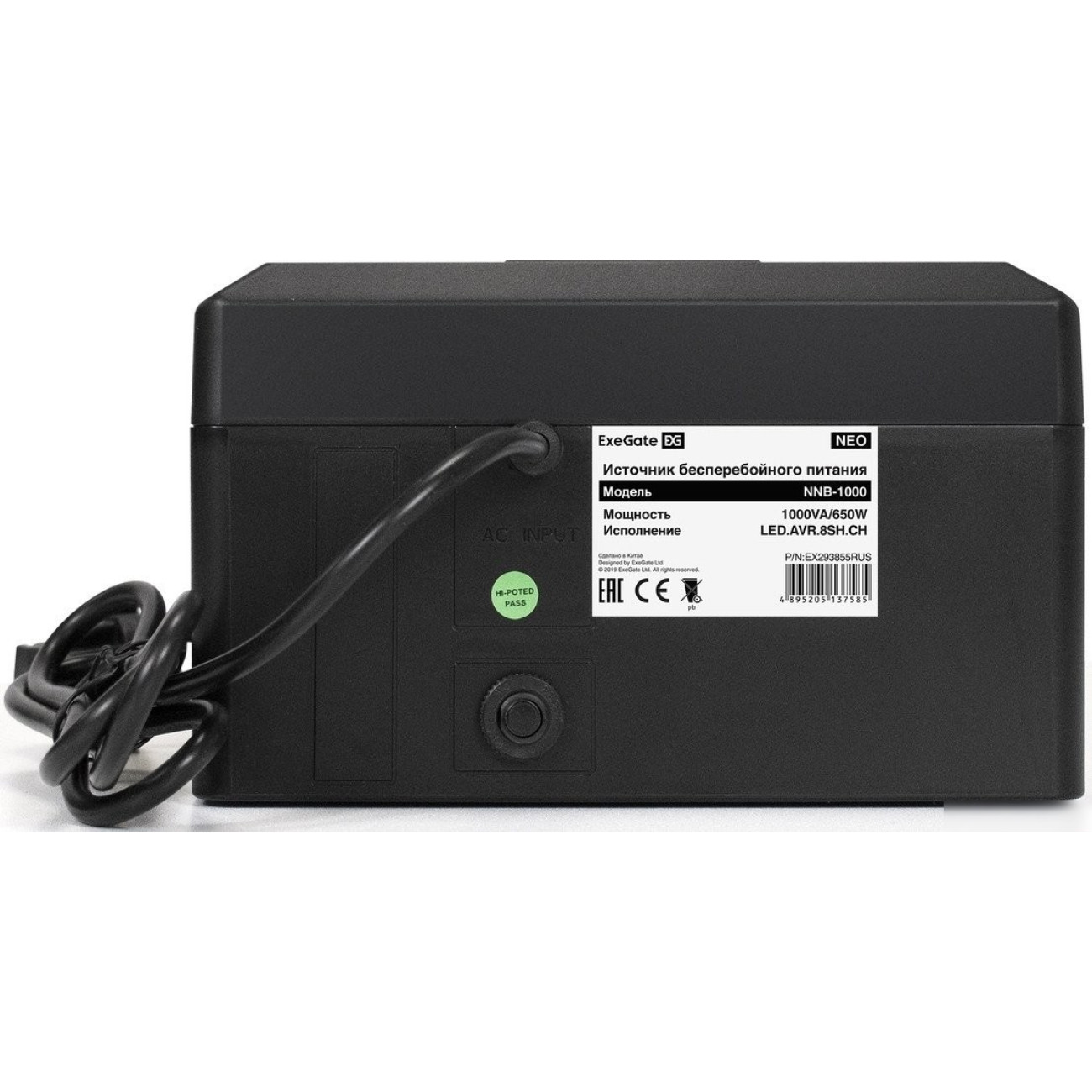 Описание Источник бесперебойного питания ExeGate Neo NNB-1000.LED.AVR.8SH.CH EX293855RUS