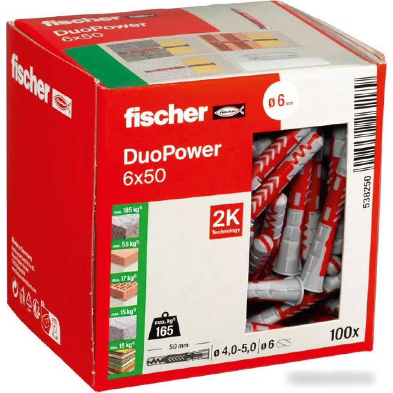 Описание Дюбель универсальный Fischer DuoPower 6 x 50 538250 (100 шт)