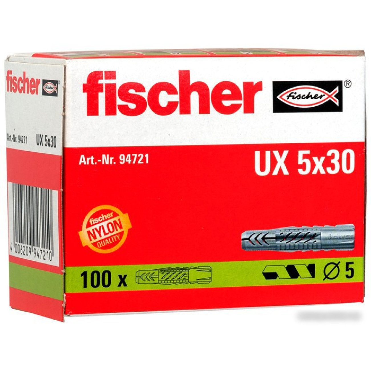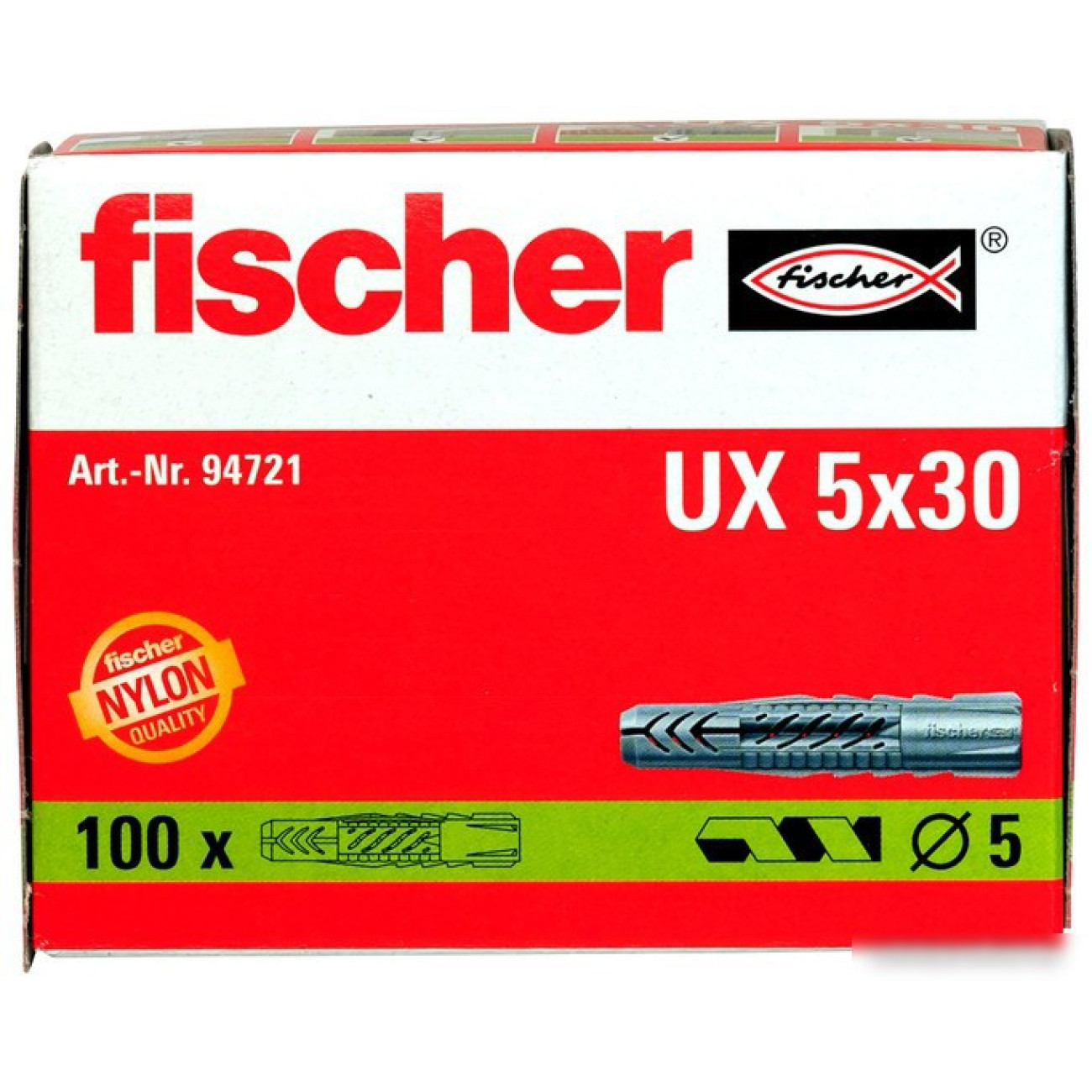 Описание Дюбель универсальный Fischer UX 5x30 94721 (100 шт)