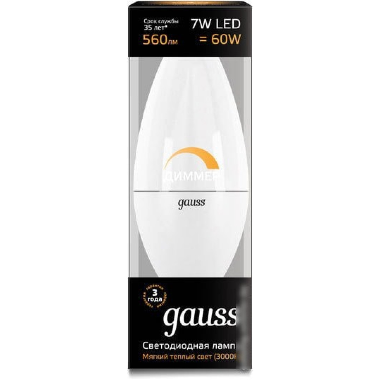 Описание Светодиодная лампа Gauss Candle-dim E14 7 Вт 3000 К 103101107-D
