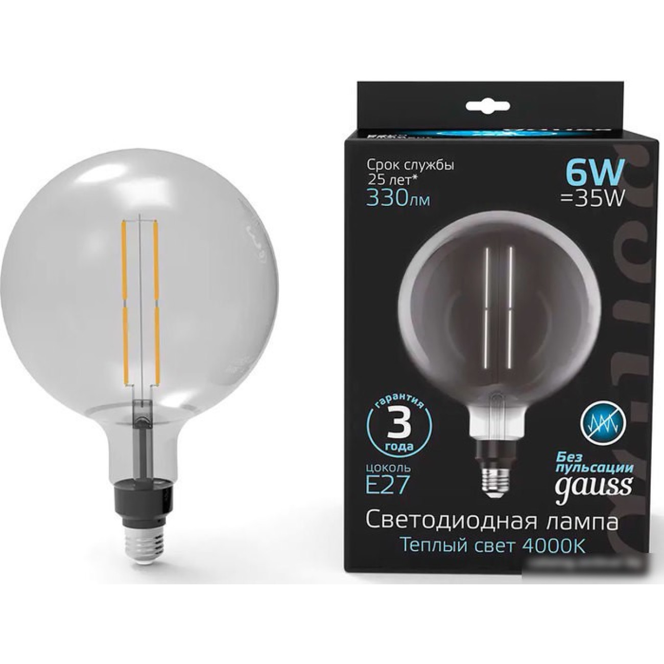Отзывы о Светодиодная лампочка Gauss Filament G200 6W 330lm 4000К Е27 gray straight LED 1/6 154802205