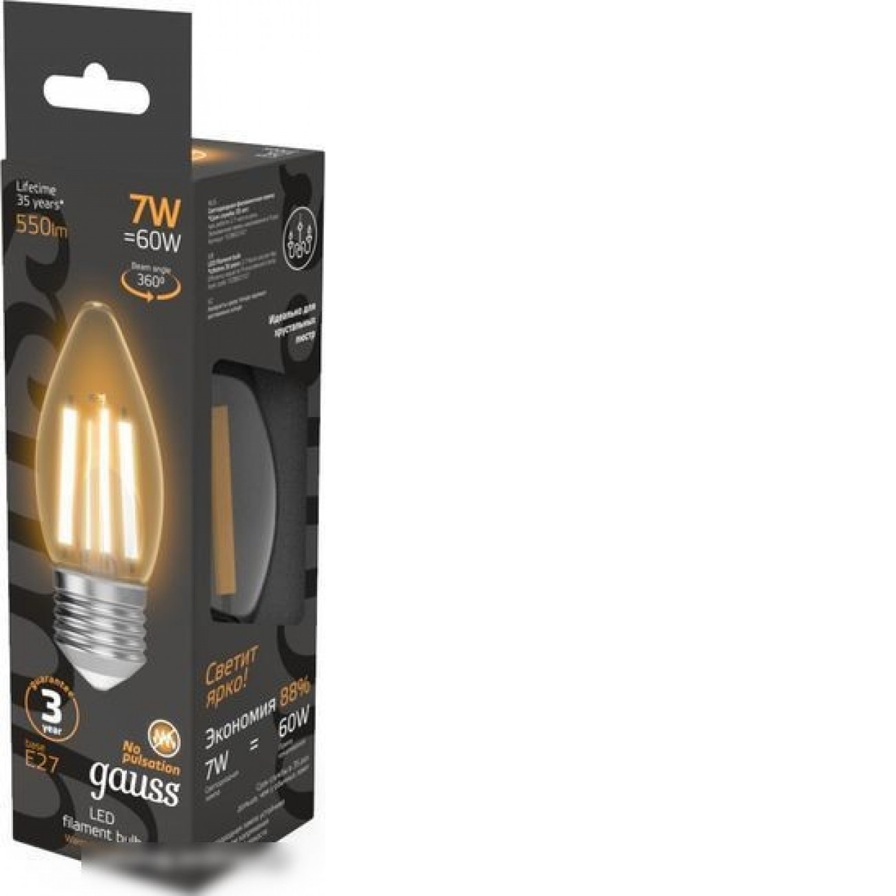 Вопросы и ответы (FAQ) Светодиодная лампочка Gauss Filament Свеча 7W 550lm 2700К Е27 LED 1/10/50 103802107
