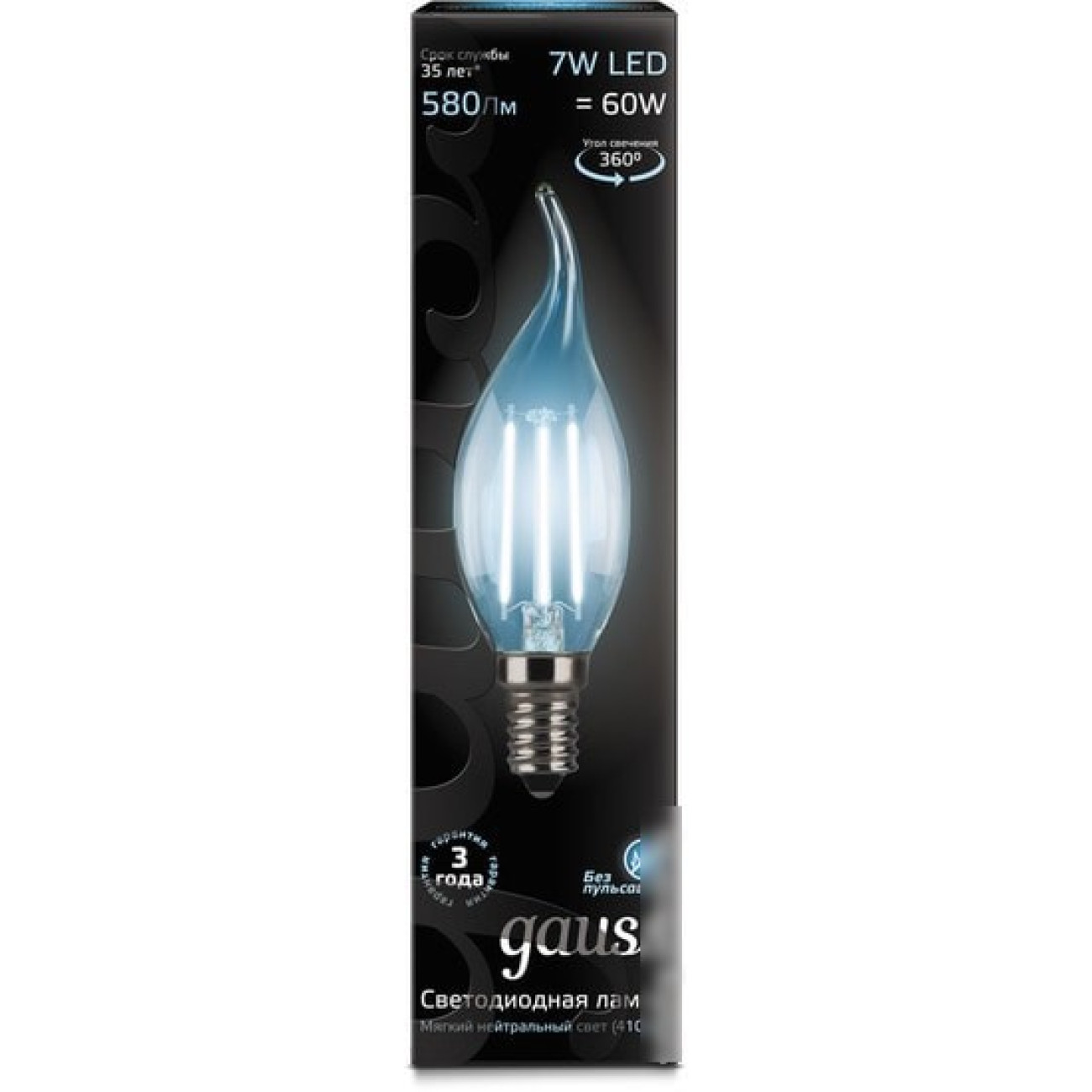 Описание Светодиодная лампа Gauss LED Filament Candle tailed E14 7 Вт 4100 К 104801207