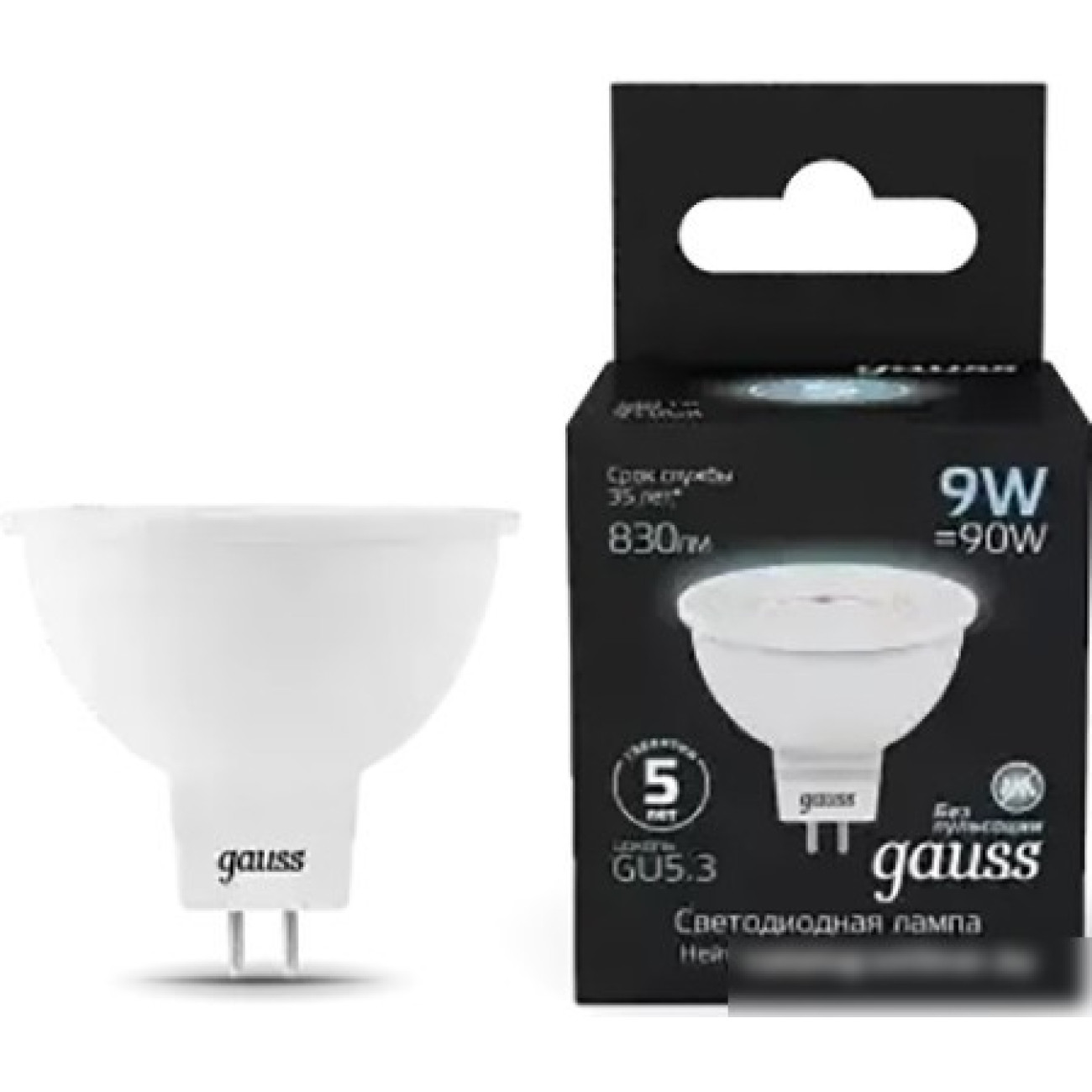 Отзывы о Светодиодная лампочка Gauss MR16 9W 830lm 4100K GU5.3 LED 101505209
